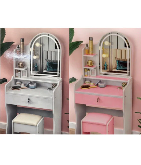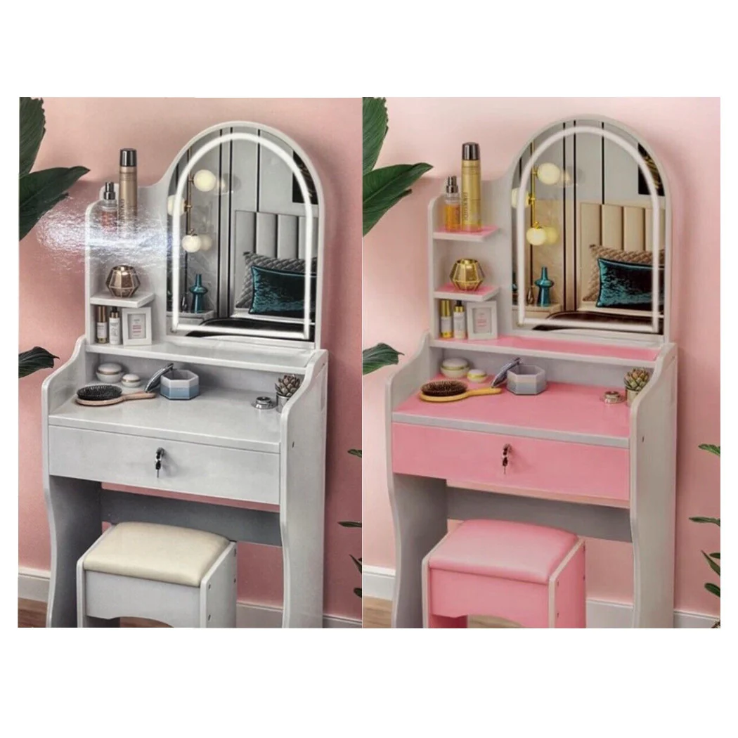 Estación de maquillaje de inodoro con un taburete de espejo moderno con luz LED Touch 2 colores