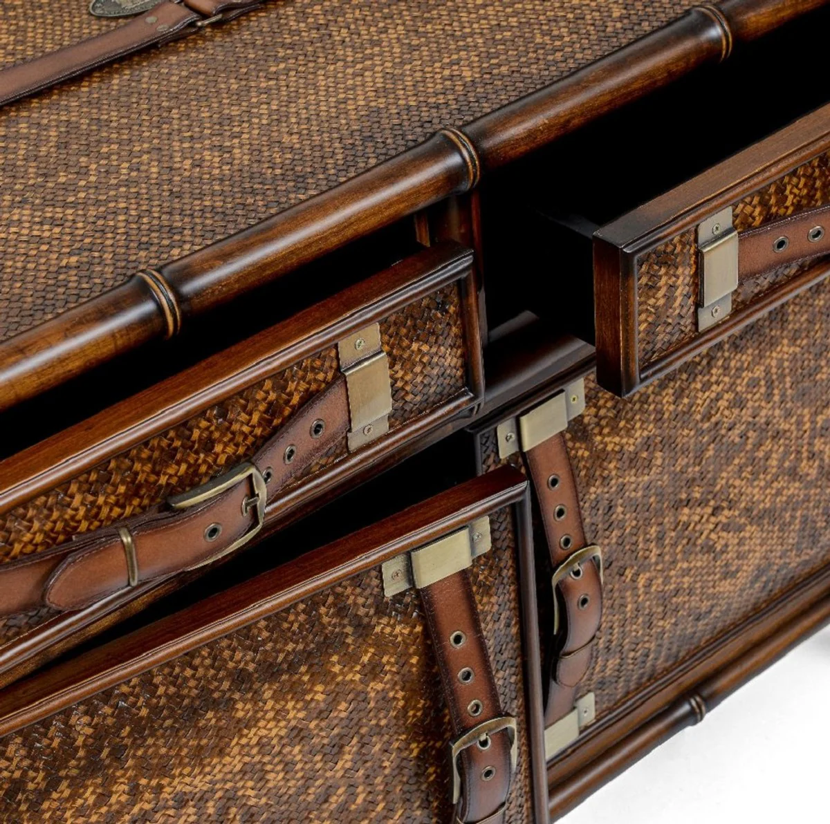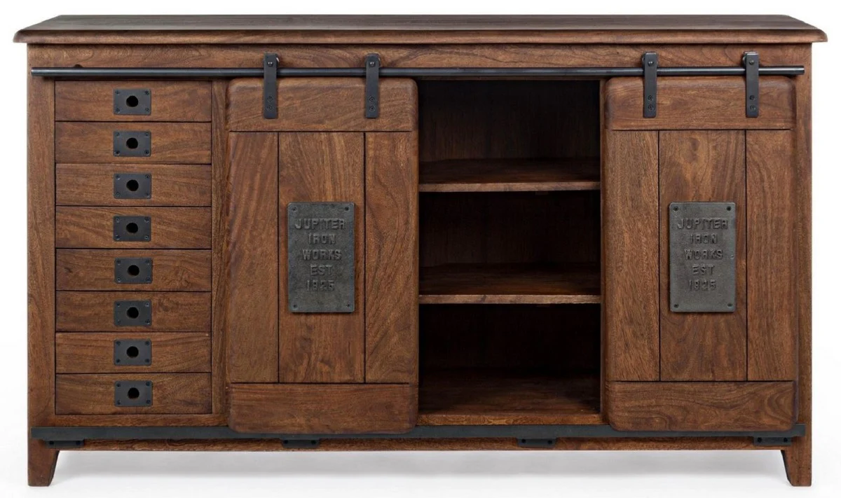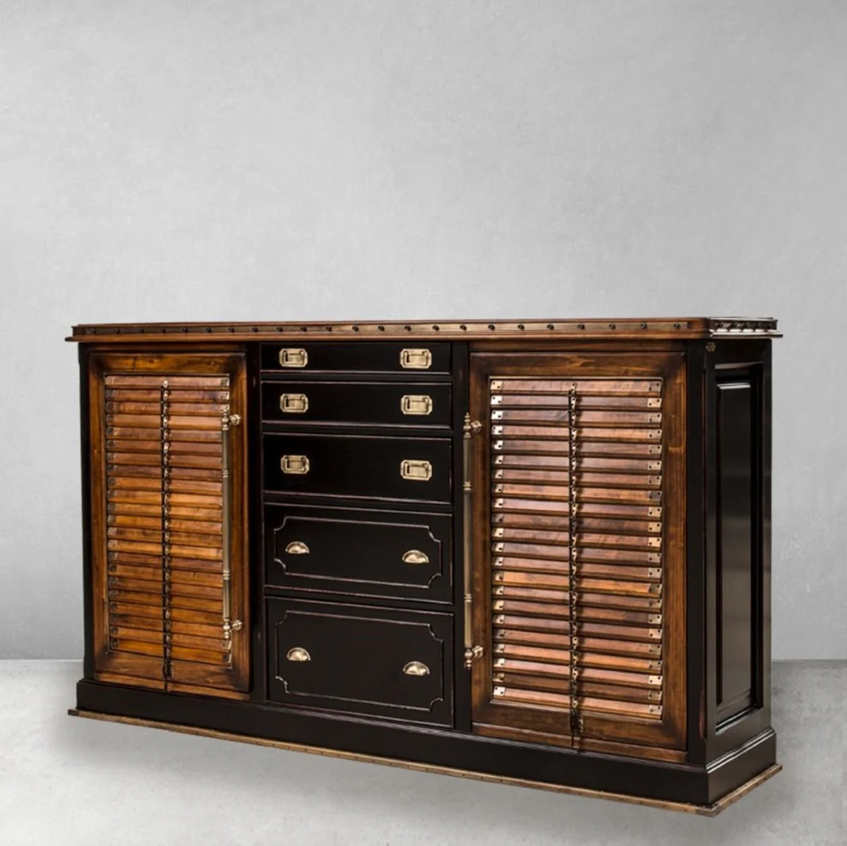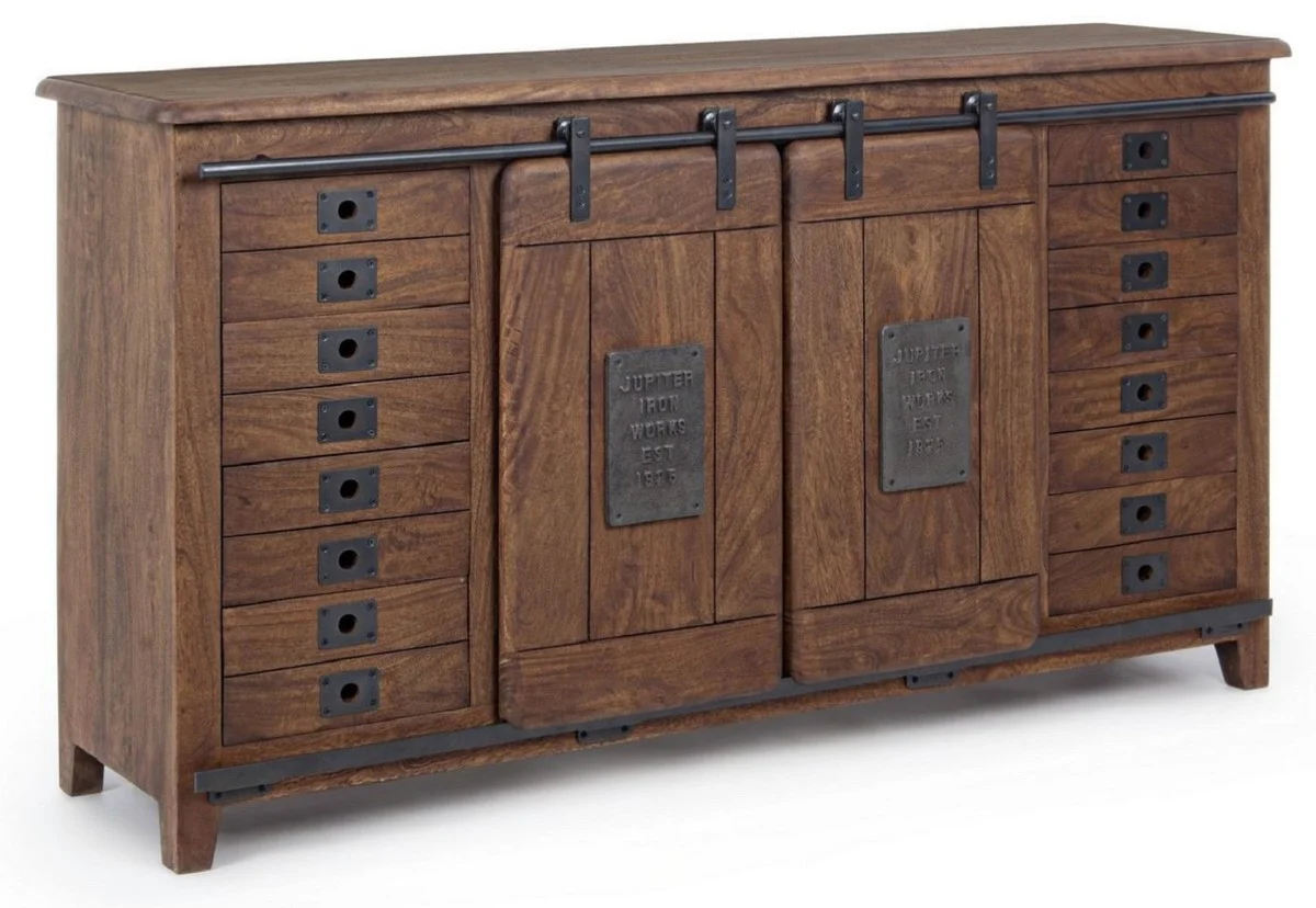 Casa Padrino aparador de estilo vintage de lujo con 2 puertas correderas y 16 cajones marrón oscuro 168 x 43 x A. 94 cm - Armario de madera maciza - Muebles de estilo vintage de lujo