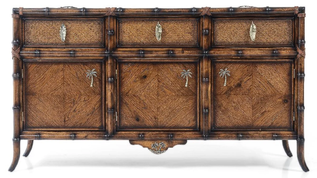 Casa Padrino aparador de estilo vintage de lujo marrón 180 x 50 x A. 90 cm - Armario de madera maciza con 3 cajones y 3 puertas - Muebles de madera maciza - Muebles de estilo vintage de lujo