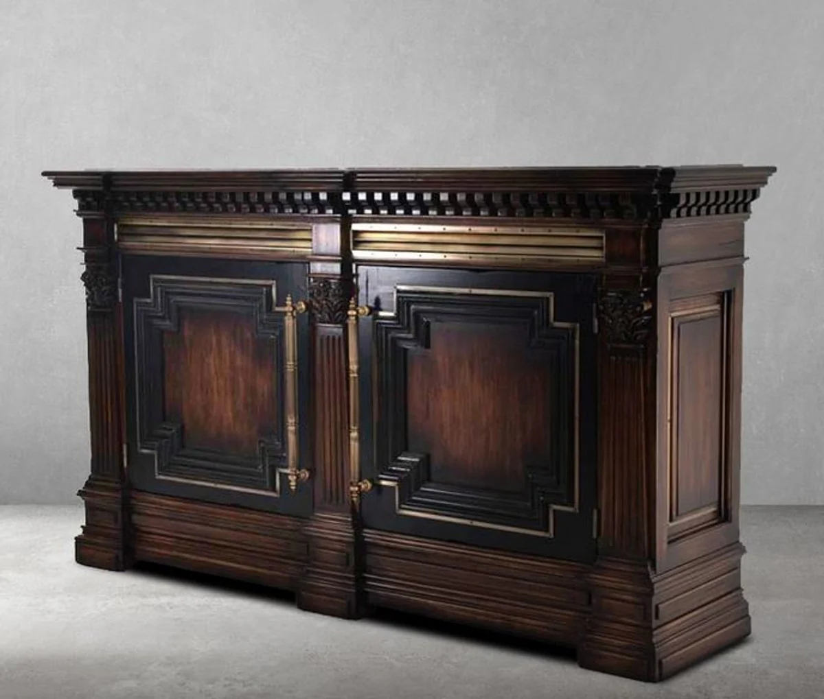 Casa Padrino aparador de estilo vintage de lujo con 5 cajones y 2 puertas negro antiguo / cobre / latón 223,5 x 50 x A. 127 cm - Armario de estilo vintage - Muebles de estilo vintage de lujo