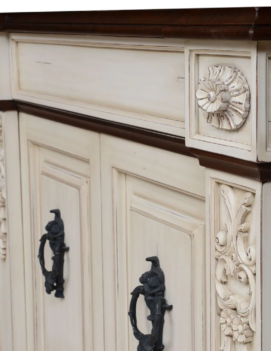 Casa Padrino aparador de estilo vintage de lujo con 4 puertas crema antiguo / marrón oscuro / negro 242,5 x 52 x A. 112 cm - Armario de estilo vintage - Muebles de estilo vintage de lujo