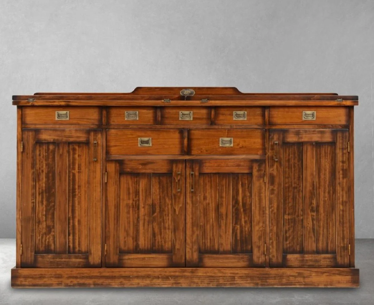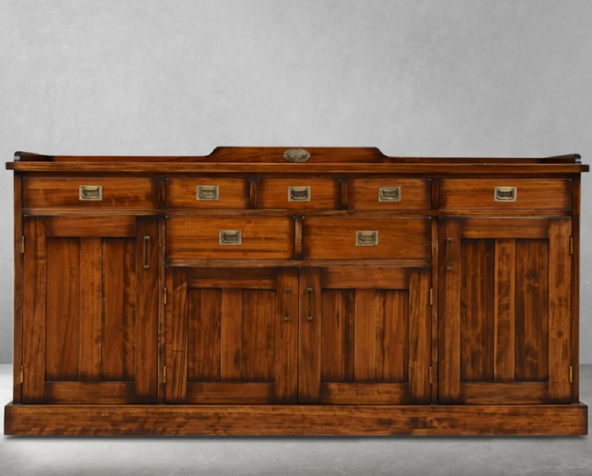 Casa Padrino aparador de estilo vintage de lujo con 4 puertas y 7 cajones marrón 183,5 x 46 x A. 86 cm - Armario de madera maciza - Muebles de estilo vintage de lujo - Muebles de madera maciza