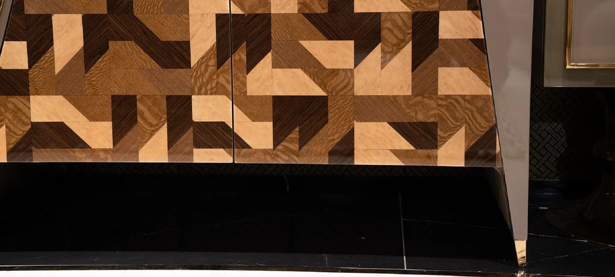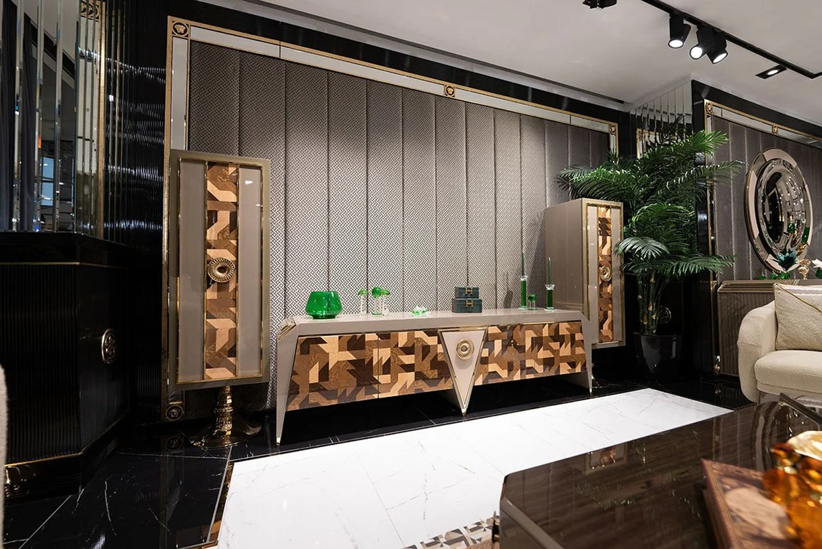 Casa Padrino conjunto de muebles Art Deco de lujo multicolor / marrón / gris / oro - 1 Aparador Art Deco de Lujo con 4 Puertas y 1 Espejo Art Deco de Lujo - Muebles Art Deco de Lujo