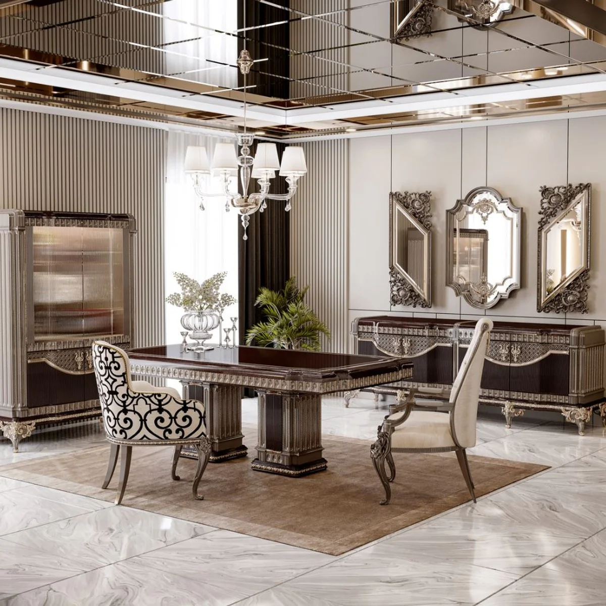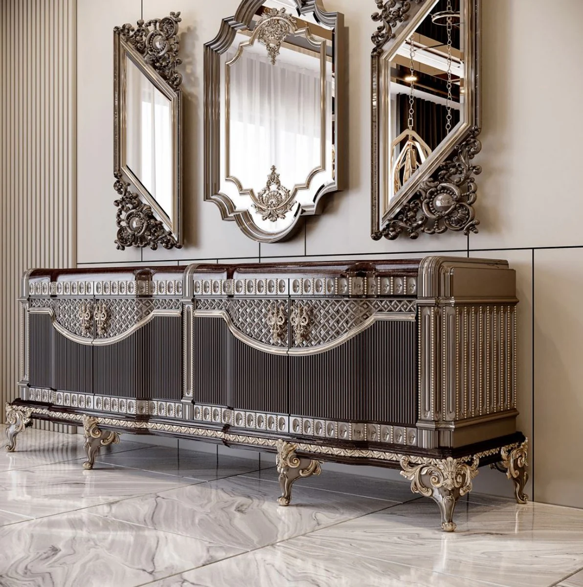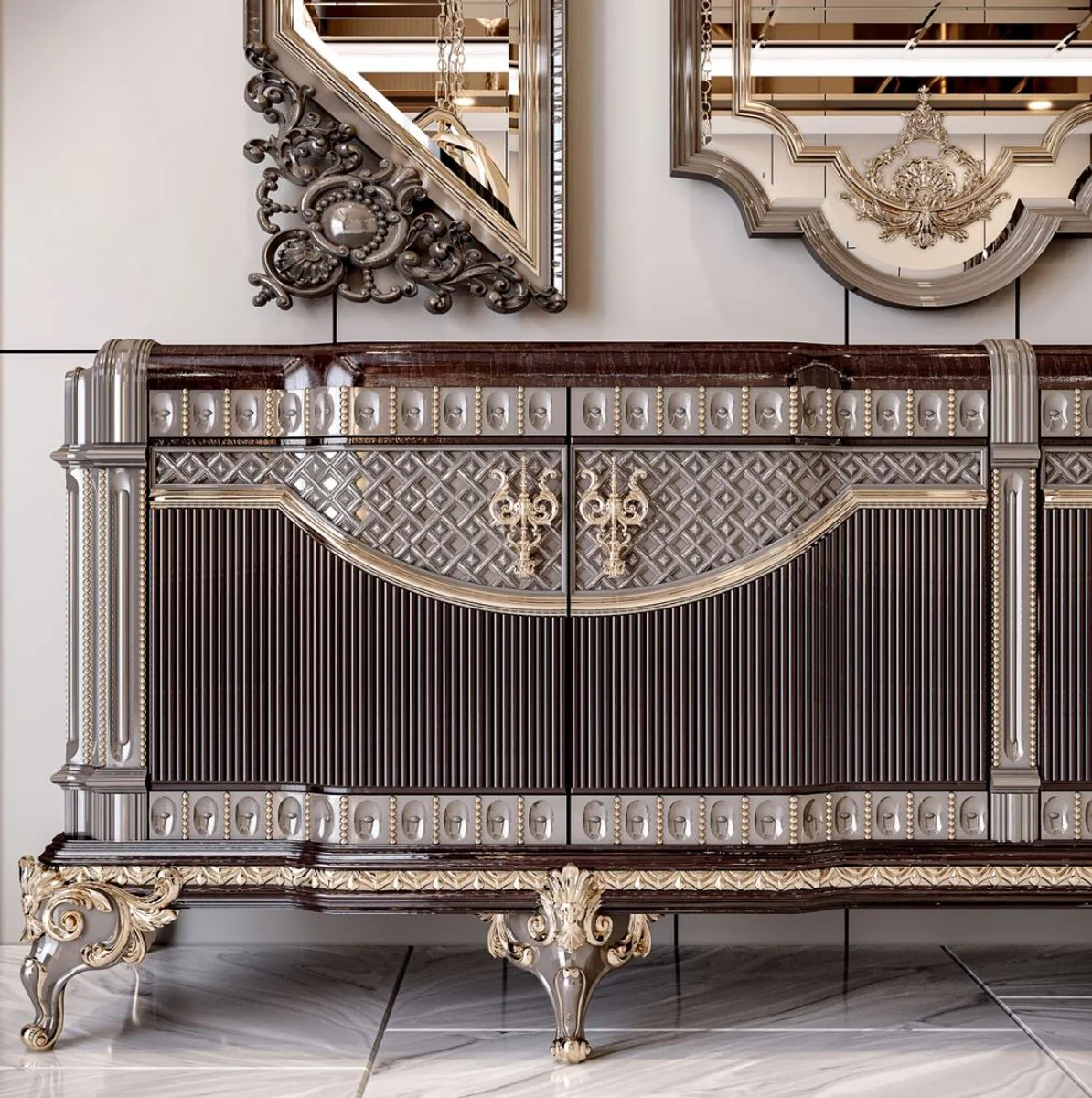 Casa Padrino aparador barroco de lujo y 3 espejos marrón oscuro / gris / oro