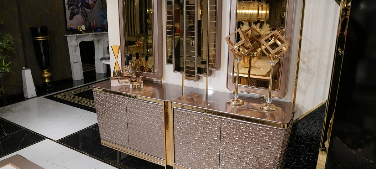 Casa Padrino conjunto de muebles de lujo gris / oro - 1 Aparador de Lujo con 4 Puertas y 3 Espejos de Lujo - Muebles de lujo - Colección de lujo