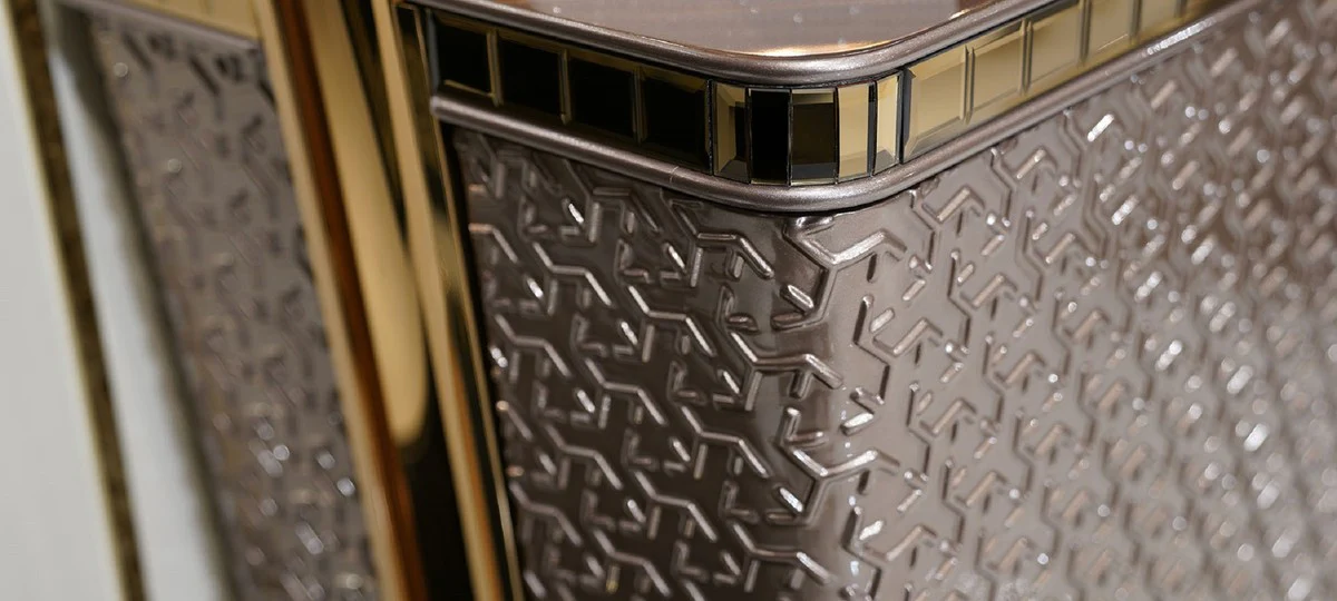 Casa Padrino aparador Art Deco de lujo gris / marrón / oro 200 x 42 x A. 80 cm - Gabinete noble de madera maciza con 2 puertas y 3 cajones - Muebles Art Deco - Muebles de lujo