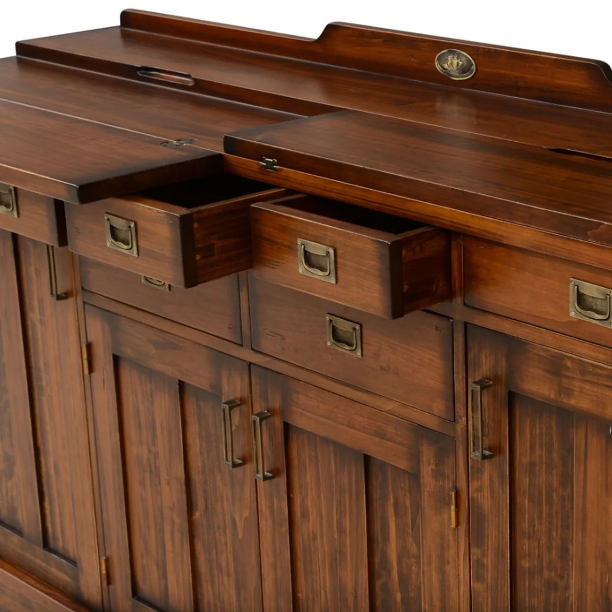 Casa Padrino aparador de estilo vintage de lujo con 4 puertas y 7 cajones marrón 183,5 x 46 x A. 86 cm - Armario de madera maciza - Muebles de estilo vintage de lujo - Muebles de madera maciza