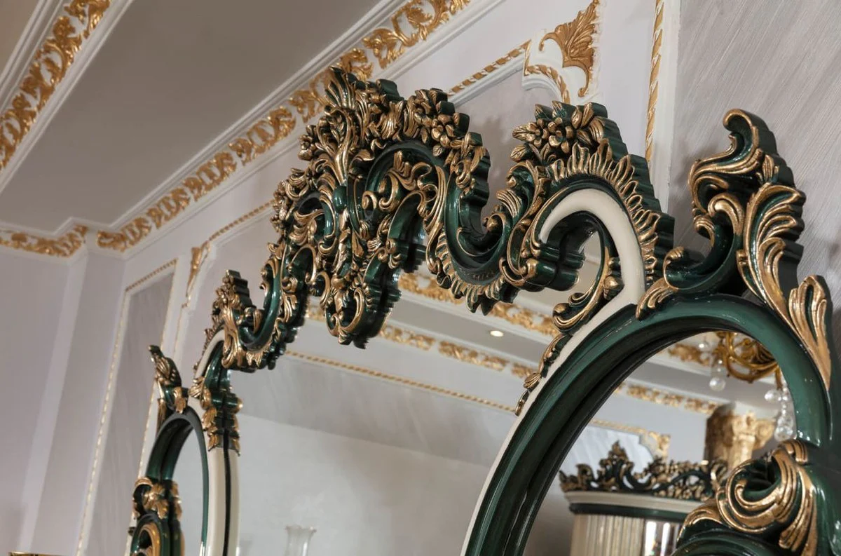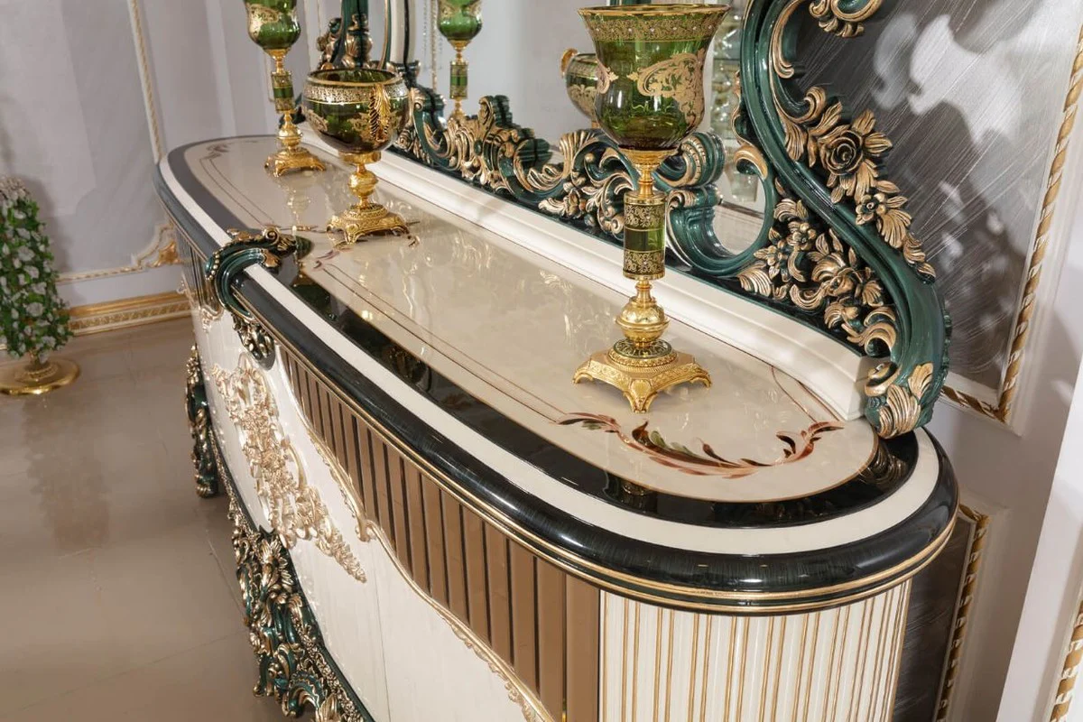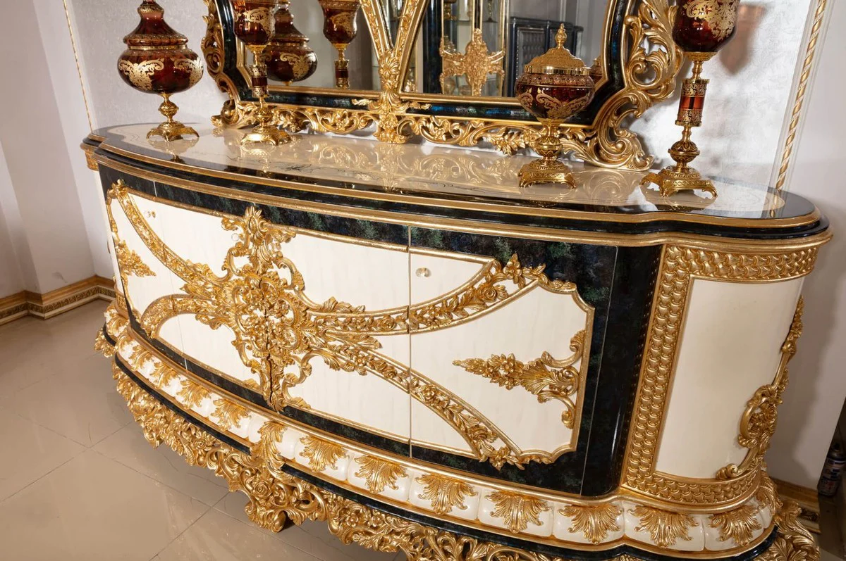 Casa Padrino conjunto de muebles barrocos de lujo blanco / verde / oro - 1 Aparador Barroco con 4 Puertas y 1 Espejo de Pared Barroco - Muebles Barroco - Noble y Magnífico