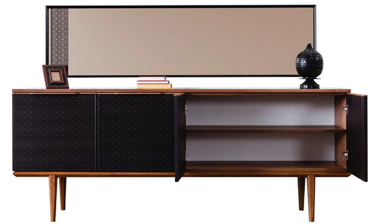 Casa Padrino conjunto de muebles de lujo marrón / negro - 1 Aparador con 4 Puertas y 1 Espejo - Muebles modernos de madera maciza - Colección de Lujo