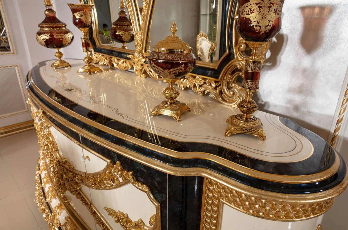 Casa Padrino aparador barroco de lujo negro / oro - Magnífico armario de madera maciza con 4 puertas - Muebles Barrocos - Noble y Magnífico