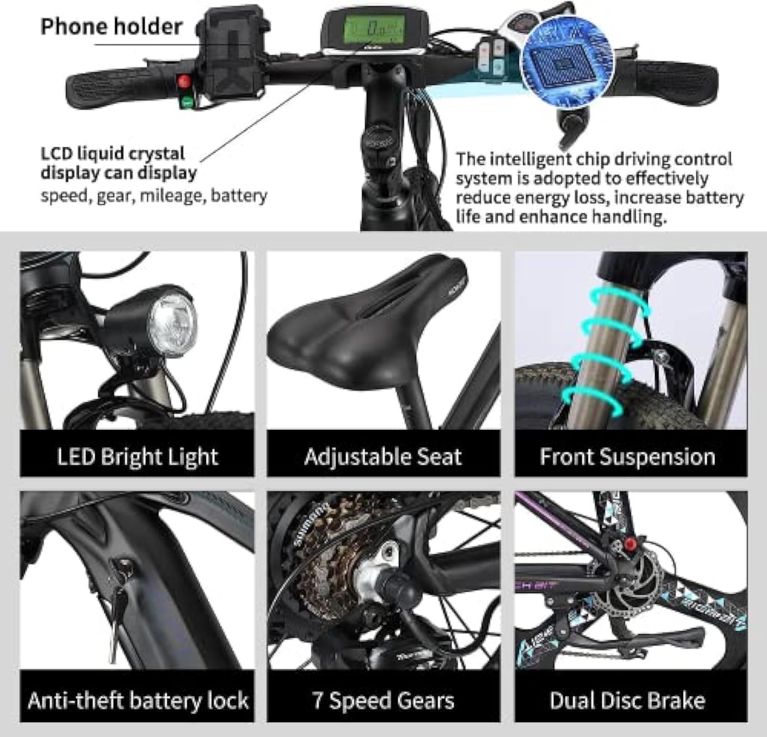 Electric Bike, 48V 10Ah ebike 1000W, 3 Riding Modes Electric Bicycle,Conquer Multiple terrains ebikes for Adults
