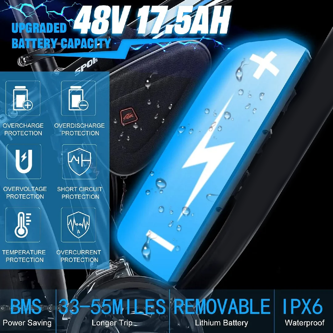 Electric Bike for Adults,48V 17.5Ah Removable Battery 1000W ebike Suitable for Multi-Terrain Electric Bicycle