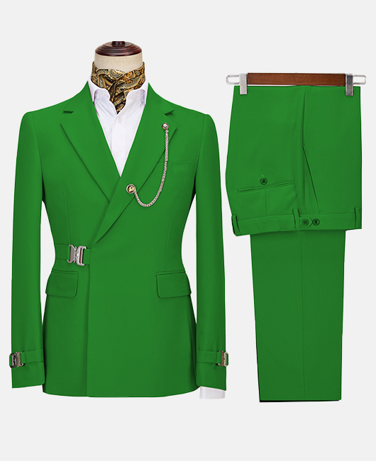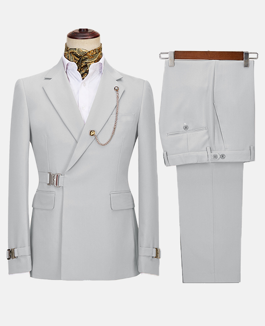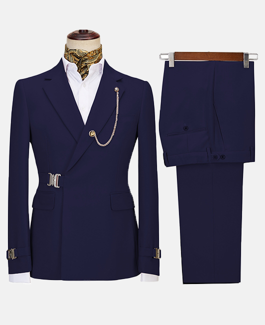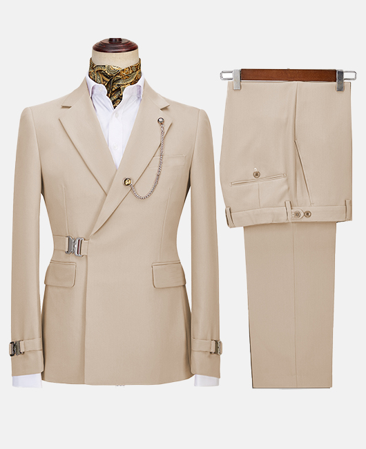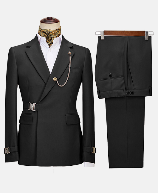 Elegant Solid Color Notch Lapel Slim Fit Buckle Blazer & Pants 2Pcs Set