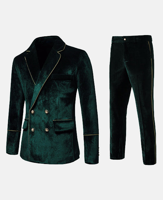 Vintage Plain Lapel Collar Double Breasted Blazer & Pants Set