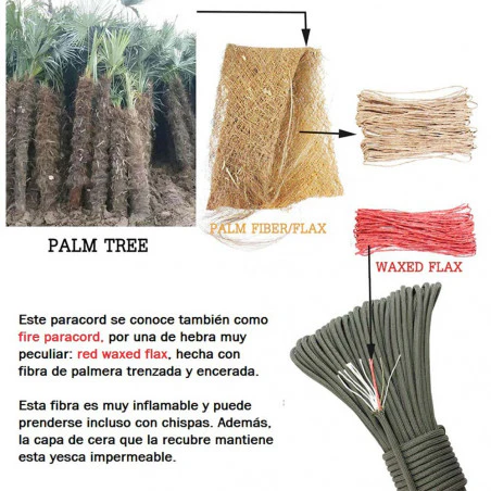 Cordón North Star Fire Paracord 550 de 7+3 hebras con hilo de fuego, coser y pesca – por metro marrón