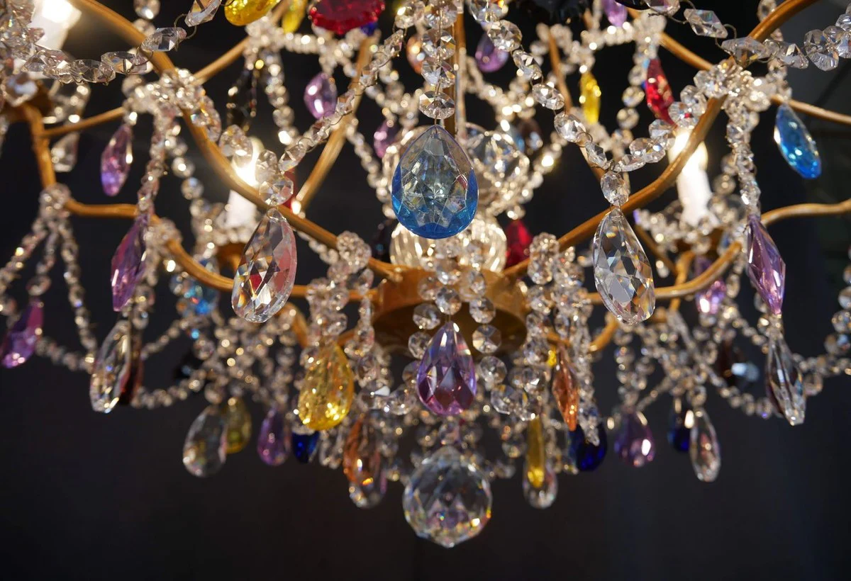Casa Padrino araña de luces de cristal barroco de lujo multicolor / oro Ø 80 x A. 80 cm - Lámpara de Araña de Hotel y Restaurante - Noble y Magnífico - Calidad de Lujo - Hecho en Italia