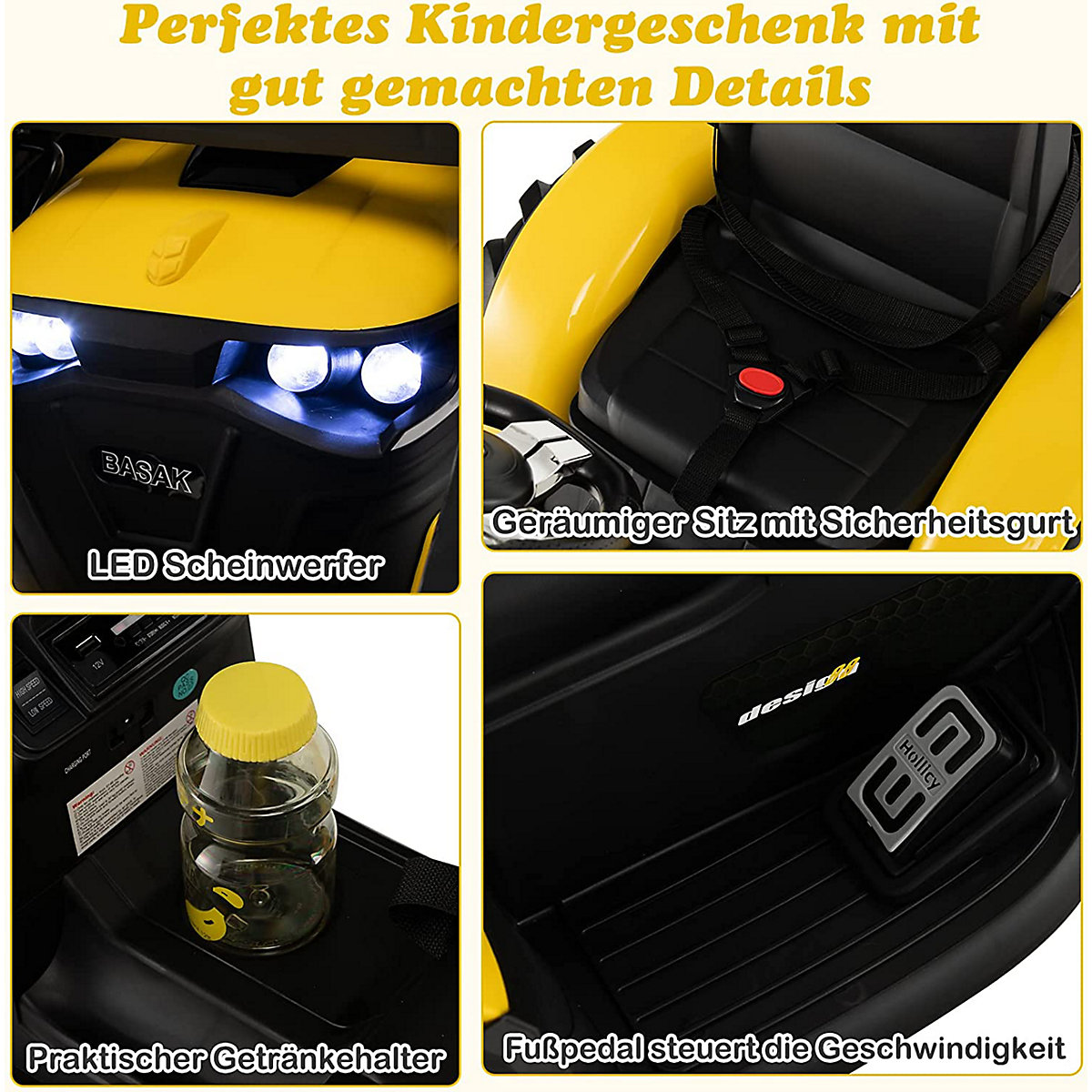 COSTWAY 12V Traktor mit Anhnger Elektroauto mit Fernbedienung & Musik gelb