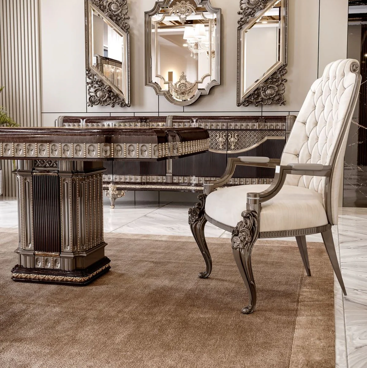 Casa Padrino mesa de comedor barroco de lujo marr¨®n oscuro / gris 250 cm