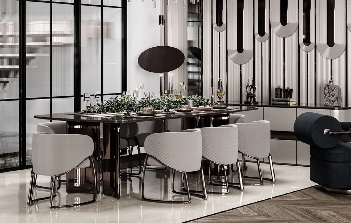 Casa Padrino mesa de comedor de lujo blanco / plata 160 x 80 x A. 75 cm - Mesa de comedor con tapa de m¨¢rmol artificial - Muebles de comedor - Muebles de lujo - Interiores de lujo
