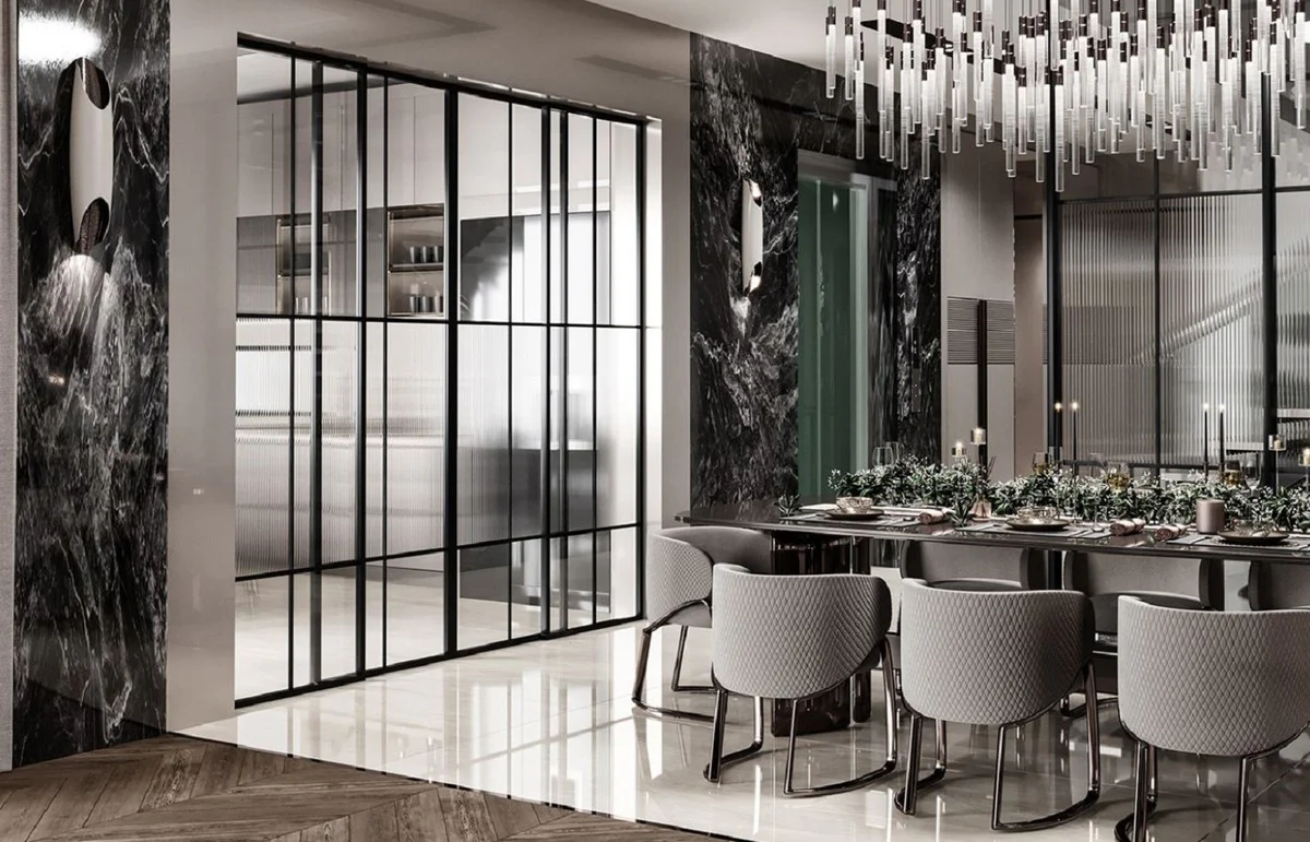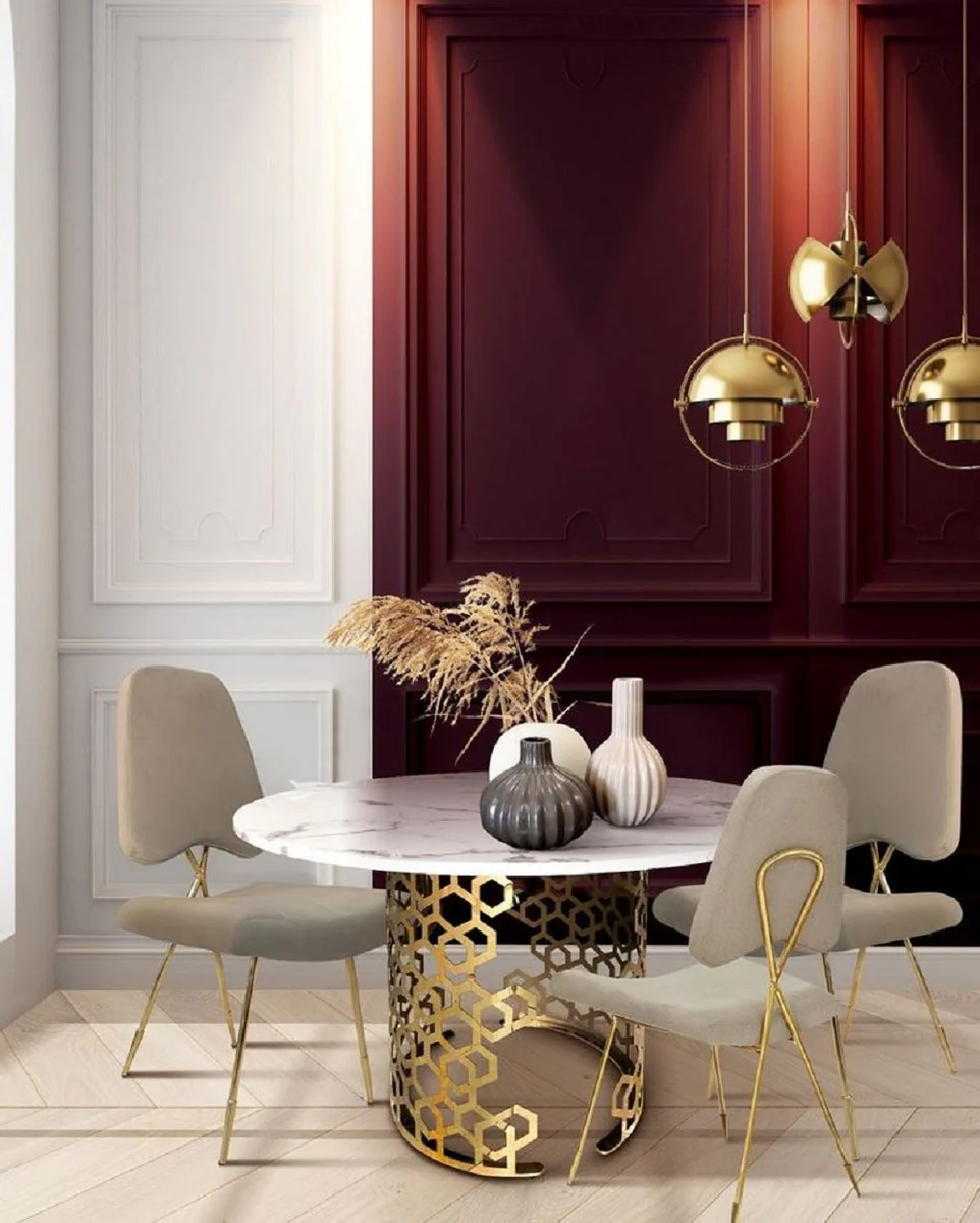 Casa Padrino mesa de comedor de lujo ? 135 x A. 76 cm - Mesa de comedor redonda con tablero de m¨¢rmol artificial - Muebles de comedor - Muebles de lujo - Interiores de lujo