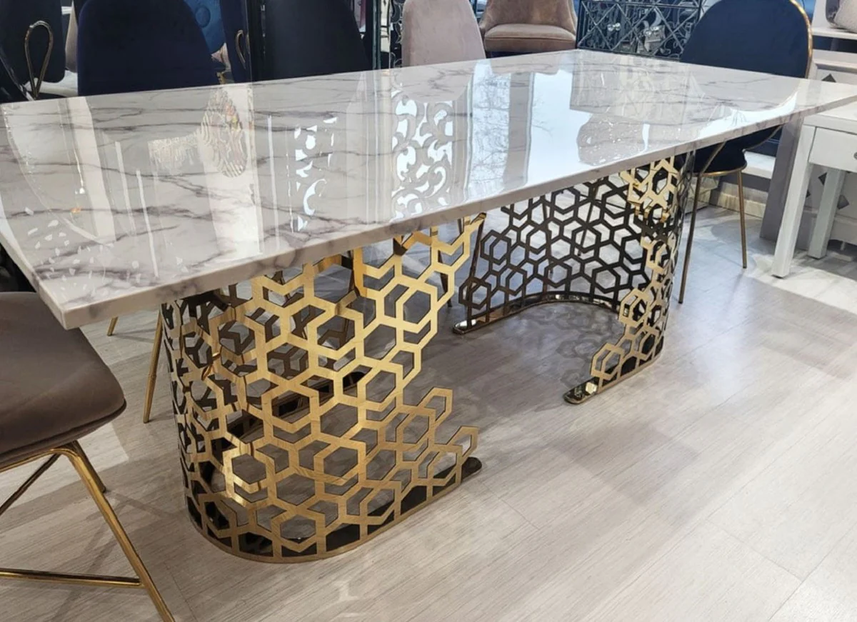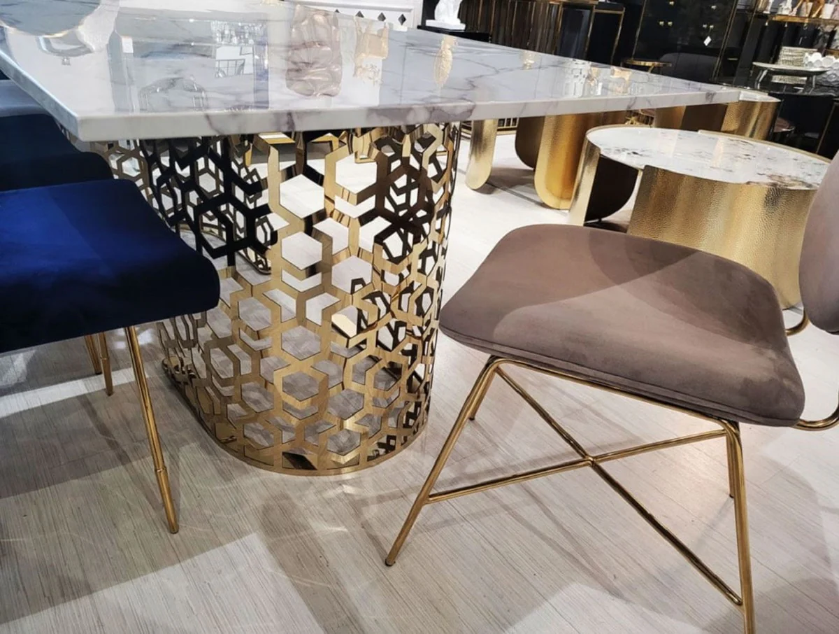 Casa Padrino mesa de comedor de lujo marr¨®n / oro 200 x 100 x A. 75 cm - Mesa de comedor con tapa de m¨¢rmol artificial - Muebles de comedor - Muebles de lujo - Interiores de lujo