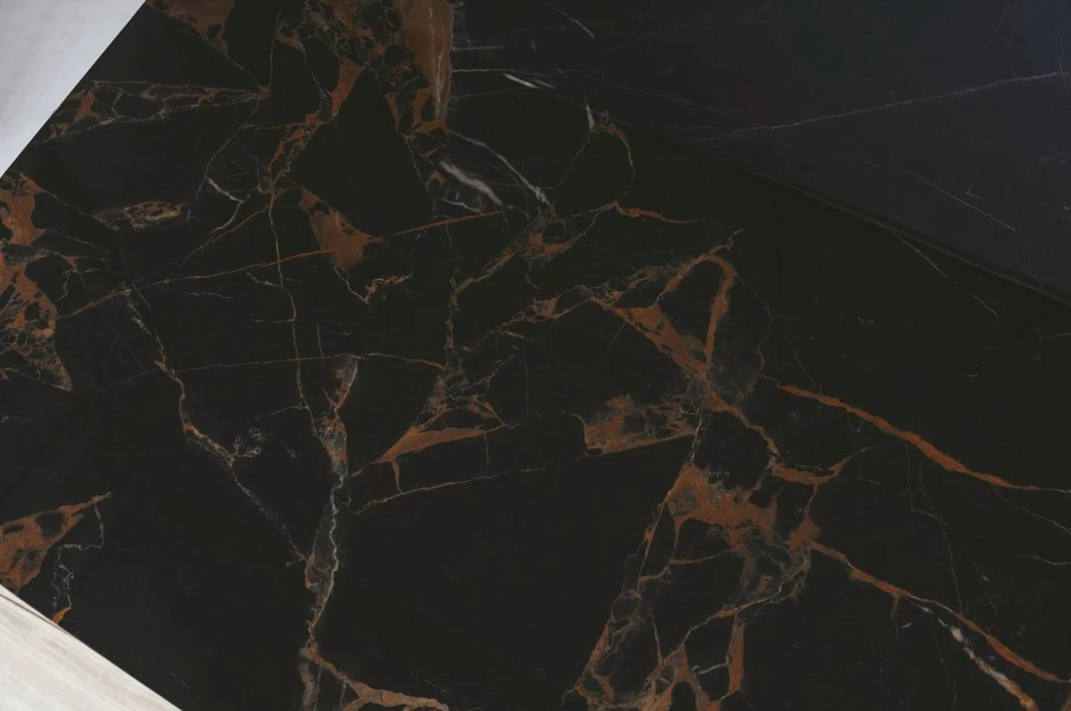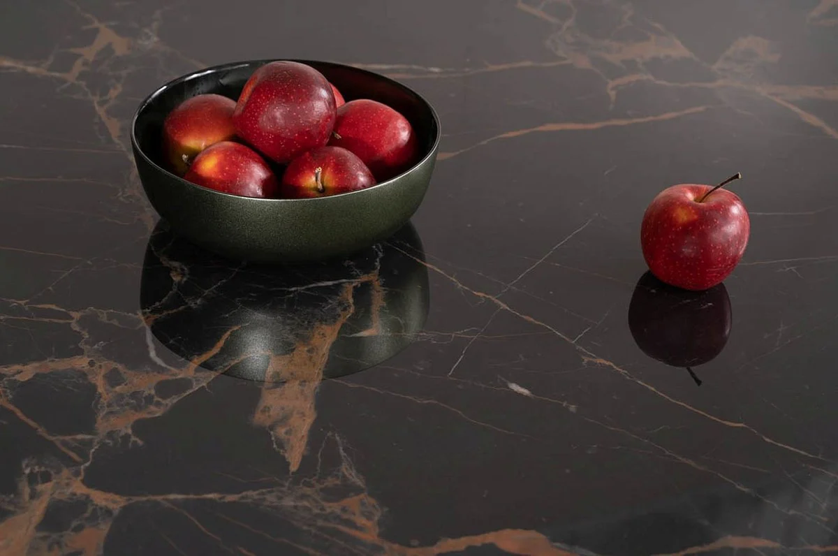 Casa Padrino mesa de comedor de lujo con tablero de cer¨¢mica de vidrio templado negro-marr¨®n / negro mate 180 x 95 x A. 76 cm - Mesa de cocina de lujo - Muebles de comedor - Muebles de lujo
