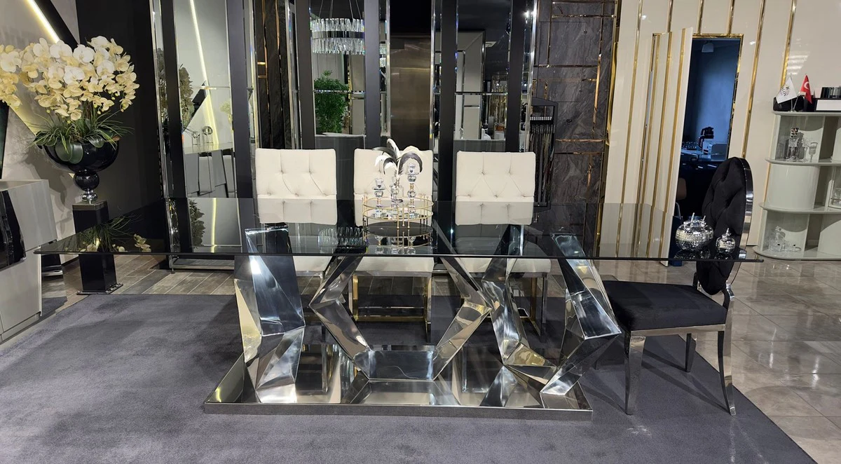 Casa Padrino mesa de comedor de dise?o de lujo plata 240 x 100 x A. 76 cm - Mesa de comedor rectangular de metal con tapa de vidrio - Muebles de comedor - Muebles de comedor de lujo