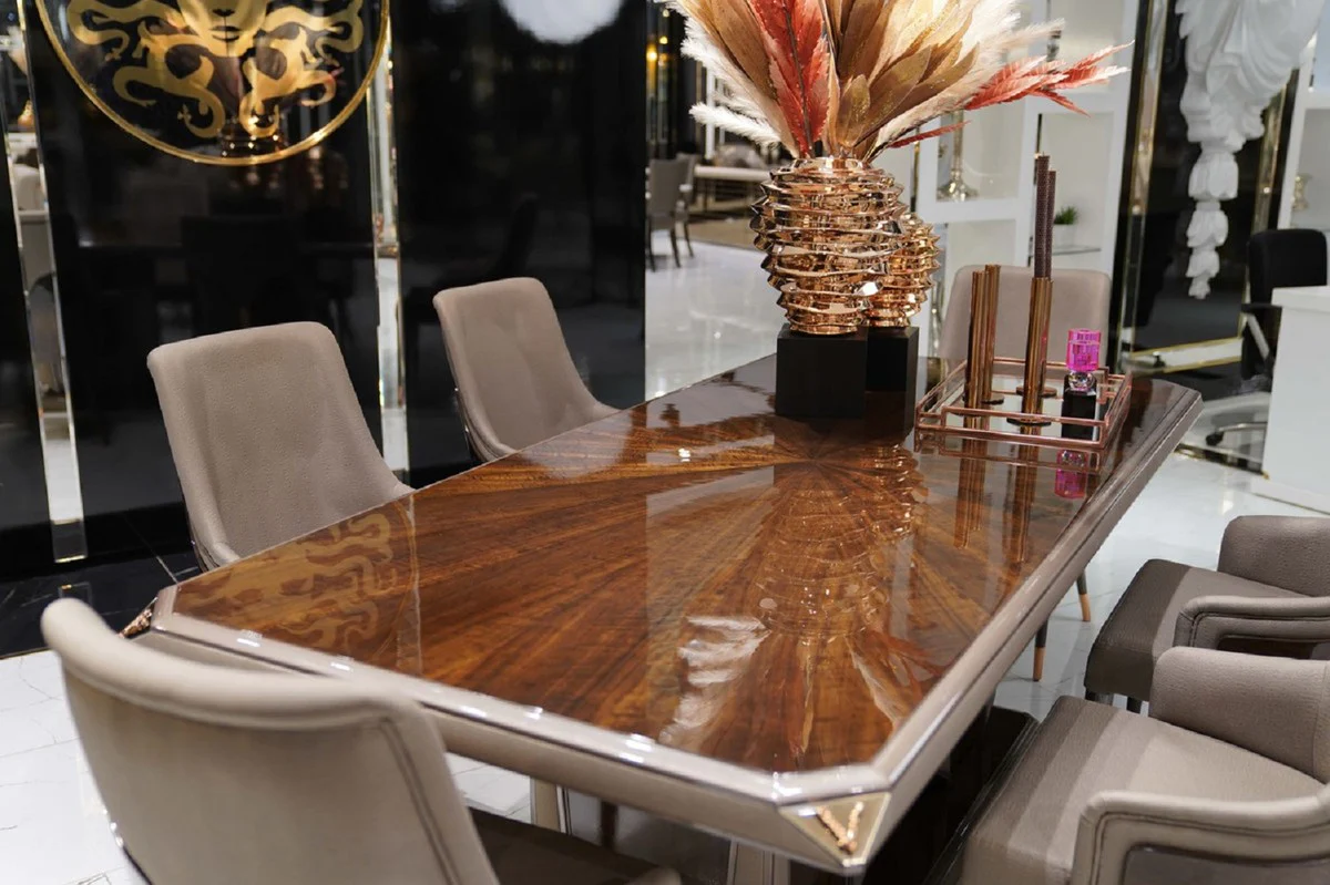 Casa Padrino mesa de comedor de lujo marr¨®n oscuro / gris / cobre 226 x 112 x A. 70 cm - Mesa de cocina rectangular - Muebles de comedor - Muebles de lujo