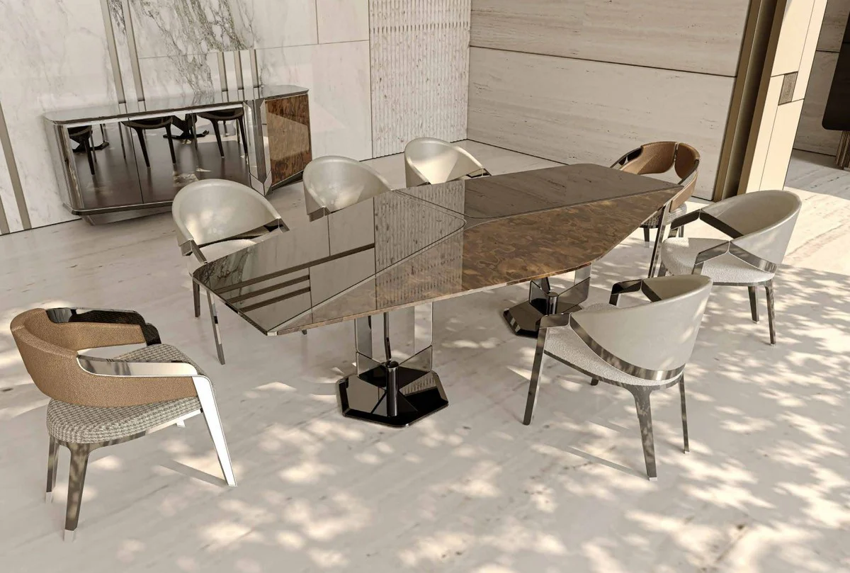 Casa Padrino mesa de comedor de lujo marr¨®n / plata 180-260 x 90 x A. 77 cm - Mesa de cocina extensible con tablero de madera maciza y patas de acero inoxidable - Muebles de comedor de lujo