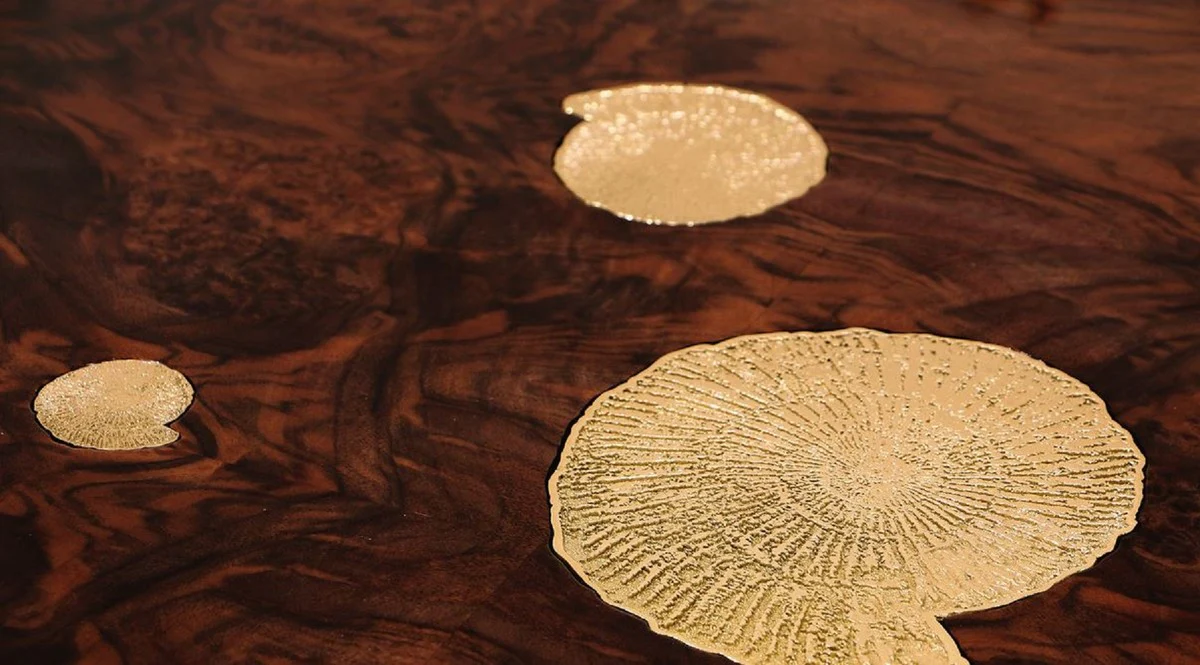 Casa Padrino Mesa de Comedor de Dise?o de Lujo Marr¨®n / Oro 450 x 150 x H. 76 cm - Mesa de Comedor Rectangular - Muebles de Comedor de Dise?o de Lujo Italiano - Muebles de Lujo - Hecho en Italia