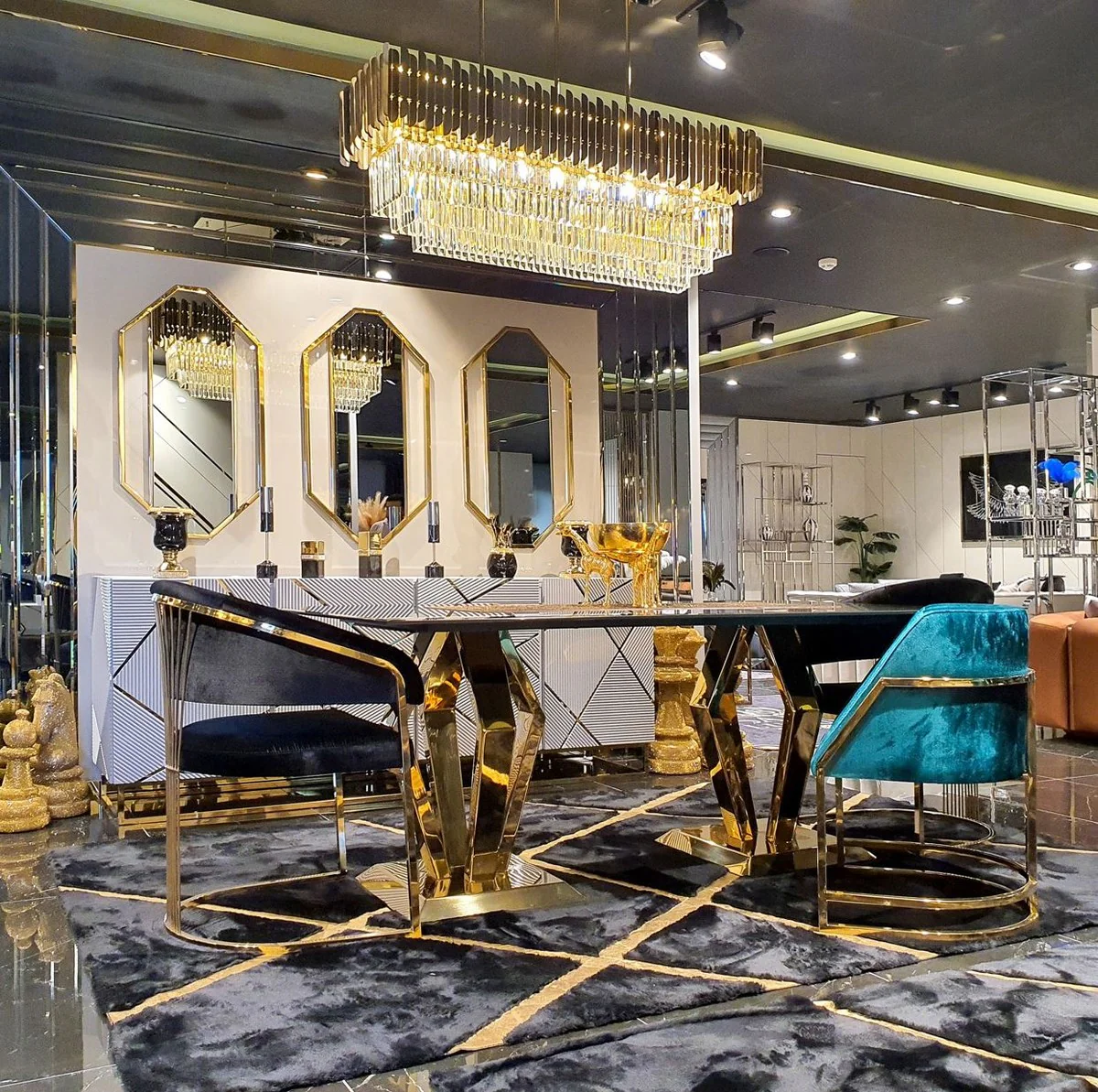 Casa Padrino mesa de comedor de lujo negro / oro 200 x 100 x A. 78 cm - Mesa de comedor moderna con tapa de vidrio - Muebles de comedor de lujo