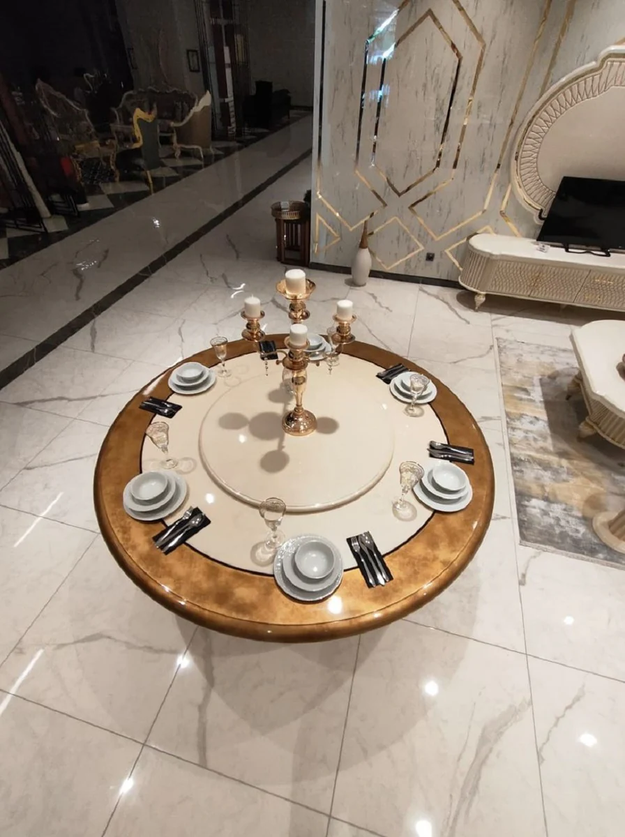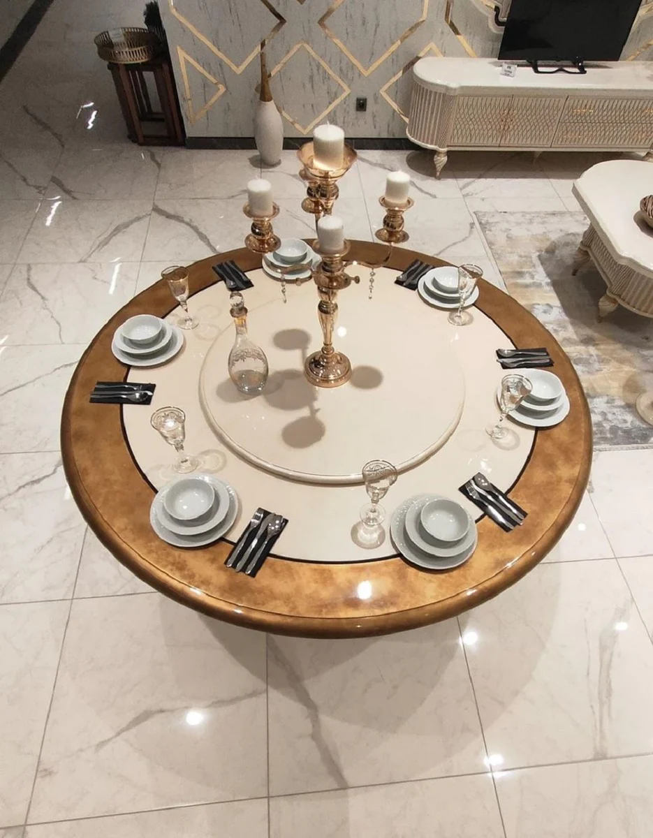 Casa Padrino mesa de comedor barroco de lujo creme / gold - Mesa de comedor redonda de madera maciza con secci¨®n central giratoria - Mobiliario Barroco Noble para Hoteles y Restaurantes