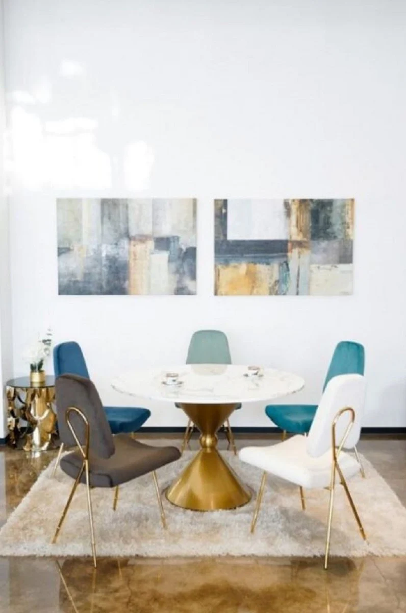 Casa Padrino mesa de comedor de lujo blanco / oro ? 130 x A. 76 cm - Mesa de comedor redonda con tapa de m¨¢rmol sint¨¦tico y patas de acero - Muebles de comedor