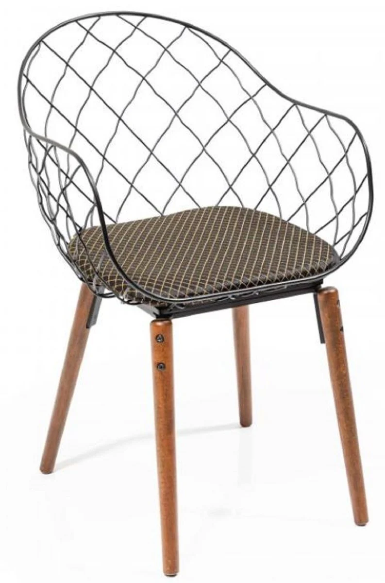 Casa Padrino conjunto de sillas de jardín de lujo negro / oro / gris / marrón 40 x 40 x A. 81 cm - Sillas de jardín modernas con reposabrazos - Muebles de Jardín y Gastronomía
