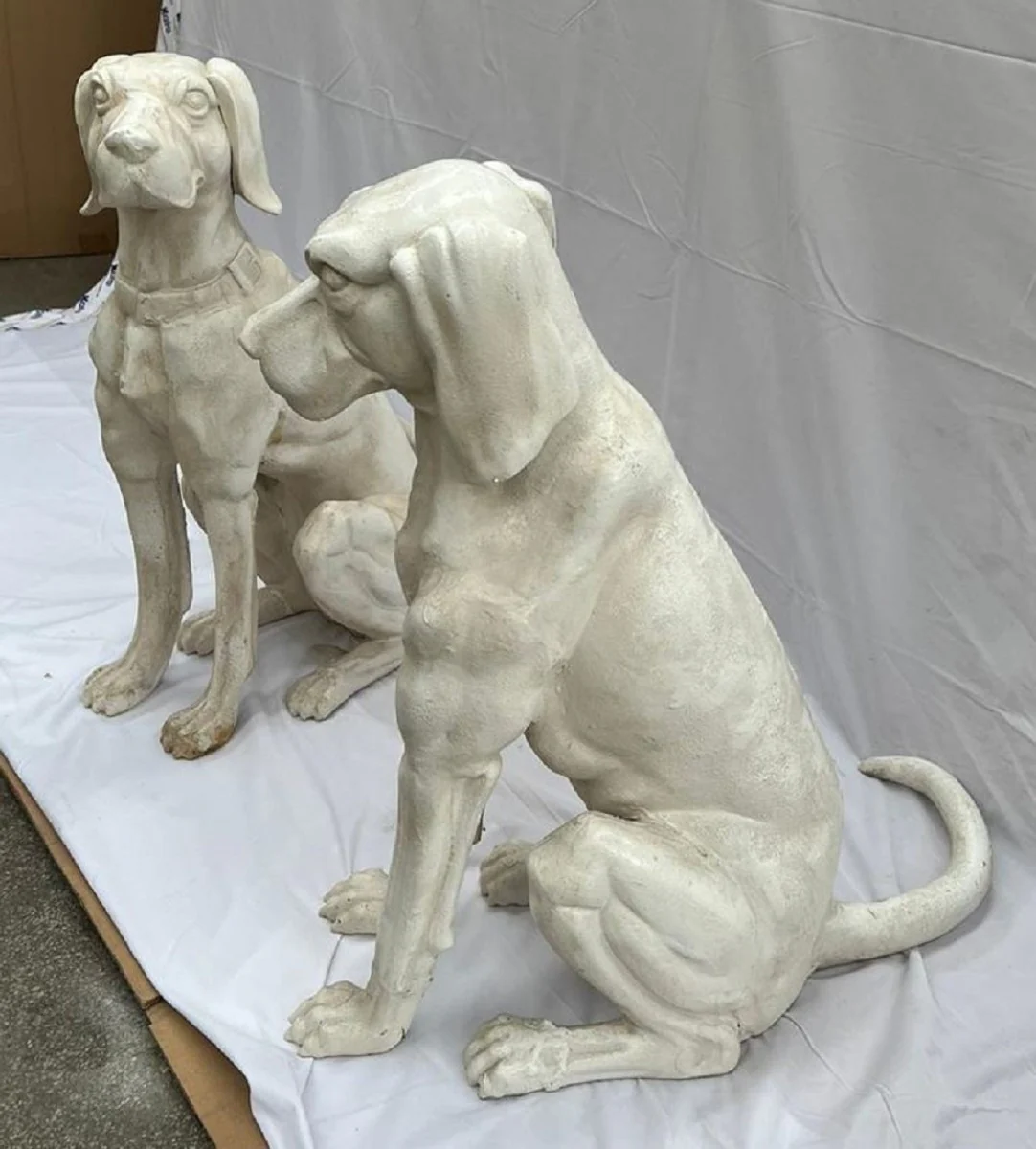 Casa Padrino conjunto de esculturas decorativas de bronce de lujo perros blanco antiguo A. 70 cm - Figuras decorativas de bronce - Decoración de salón - Decoración de jardín