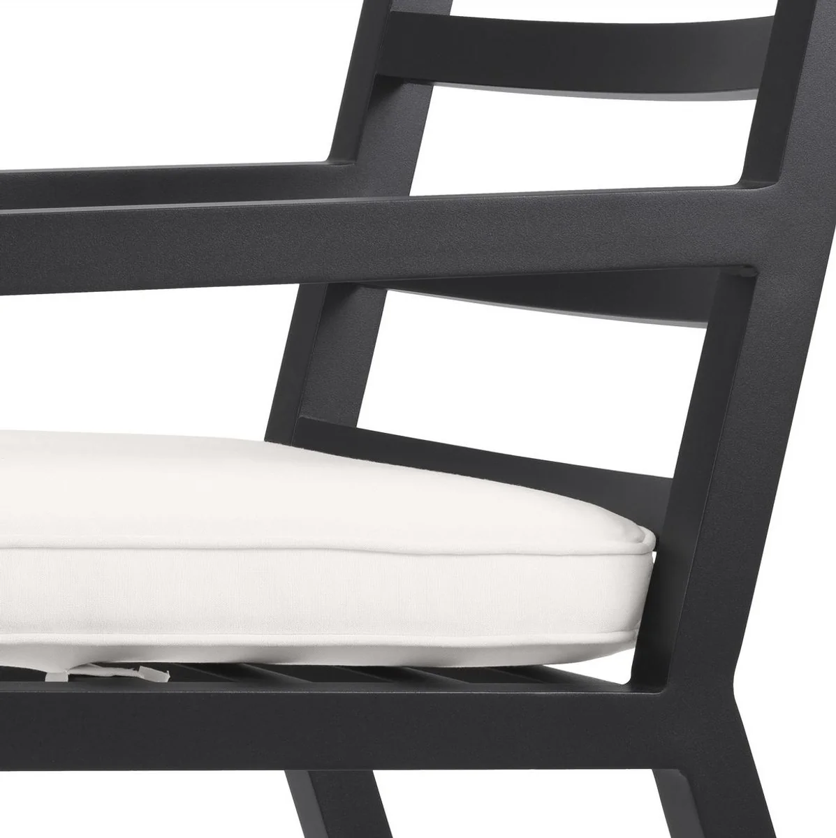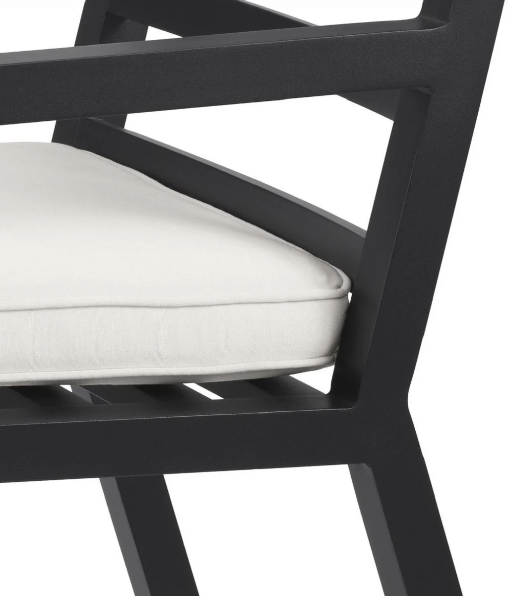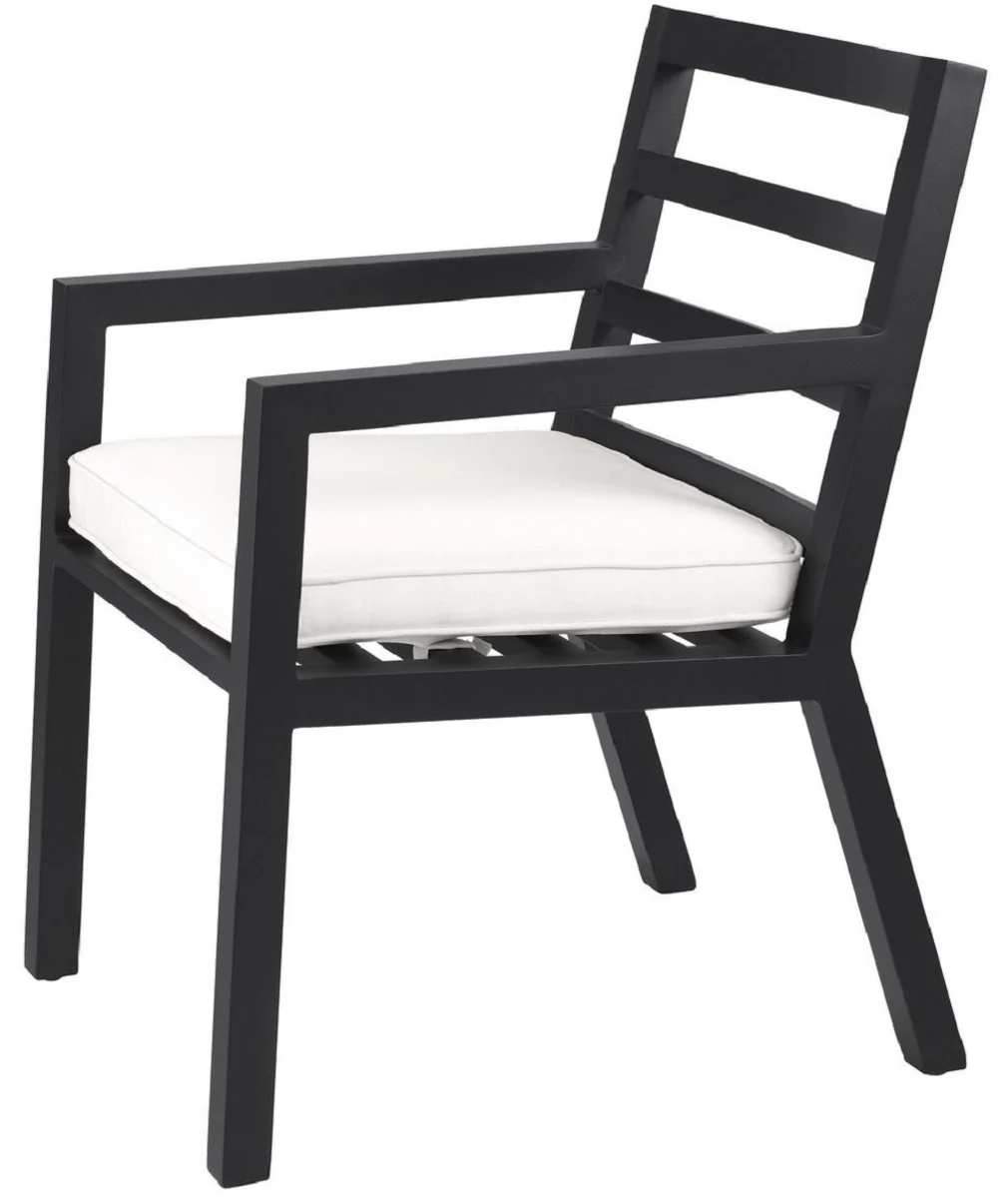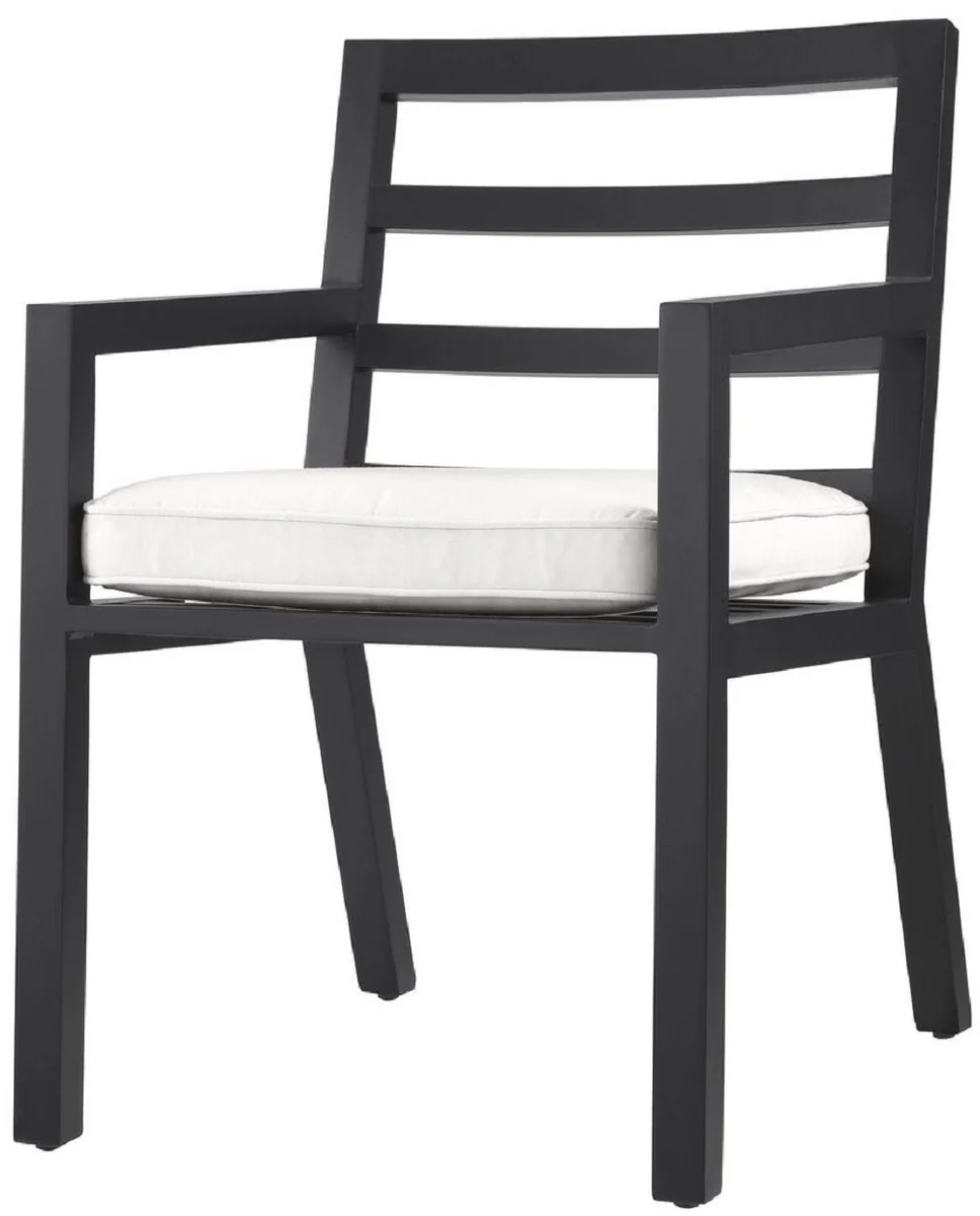 Casa Padrino silla de comedor de lujo con reposabrazos negro / blanco 56 x 66,5 x A. 87 cm - Silla de aluminio resistente a la intemperie con coj¨ªn de asiento - Silla de Jard¨ªn de Terraza