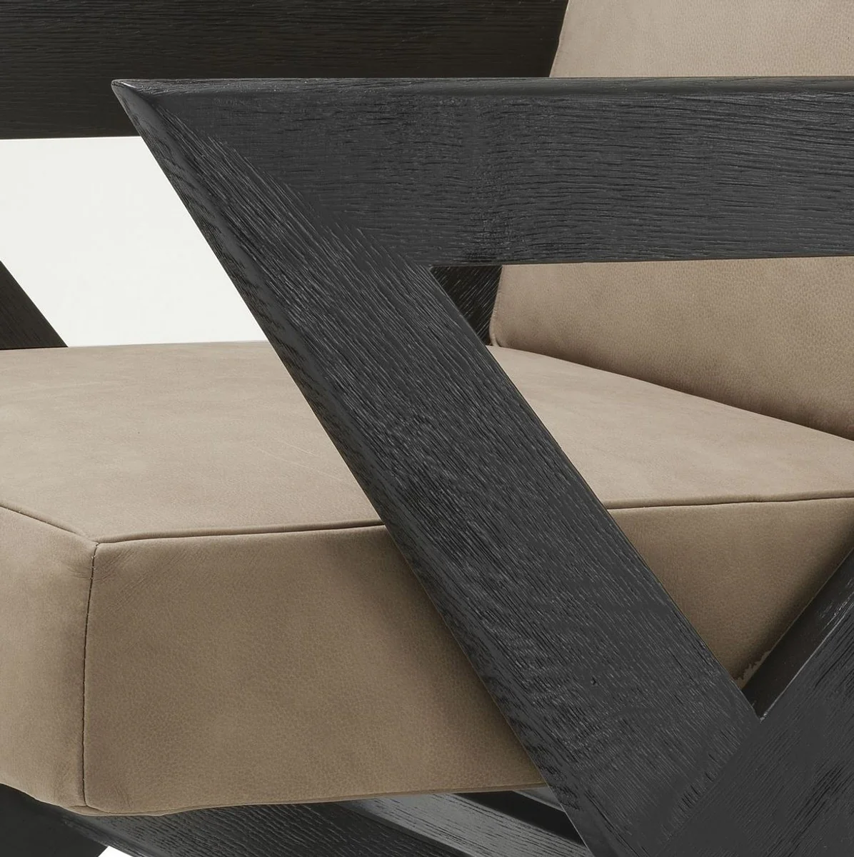 Casa Padrino silla de comedor de piel genuina de lujo con reposabrazos beige / negro 59 x 74 x A. 88 cm - Silla de cocina con cuero de b¨²falo nobuck fino - Muebles de comedor de lujo