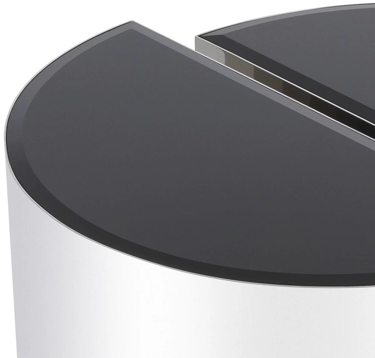 Casa Padrino conjunto de mesa auxiliar de lujo plata / negro - 2 Mesas semicirculares de acero inoxidable con tapas de vidrio biselado - Muebles de sala de lujo