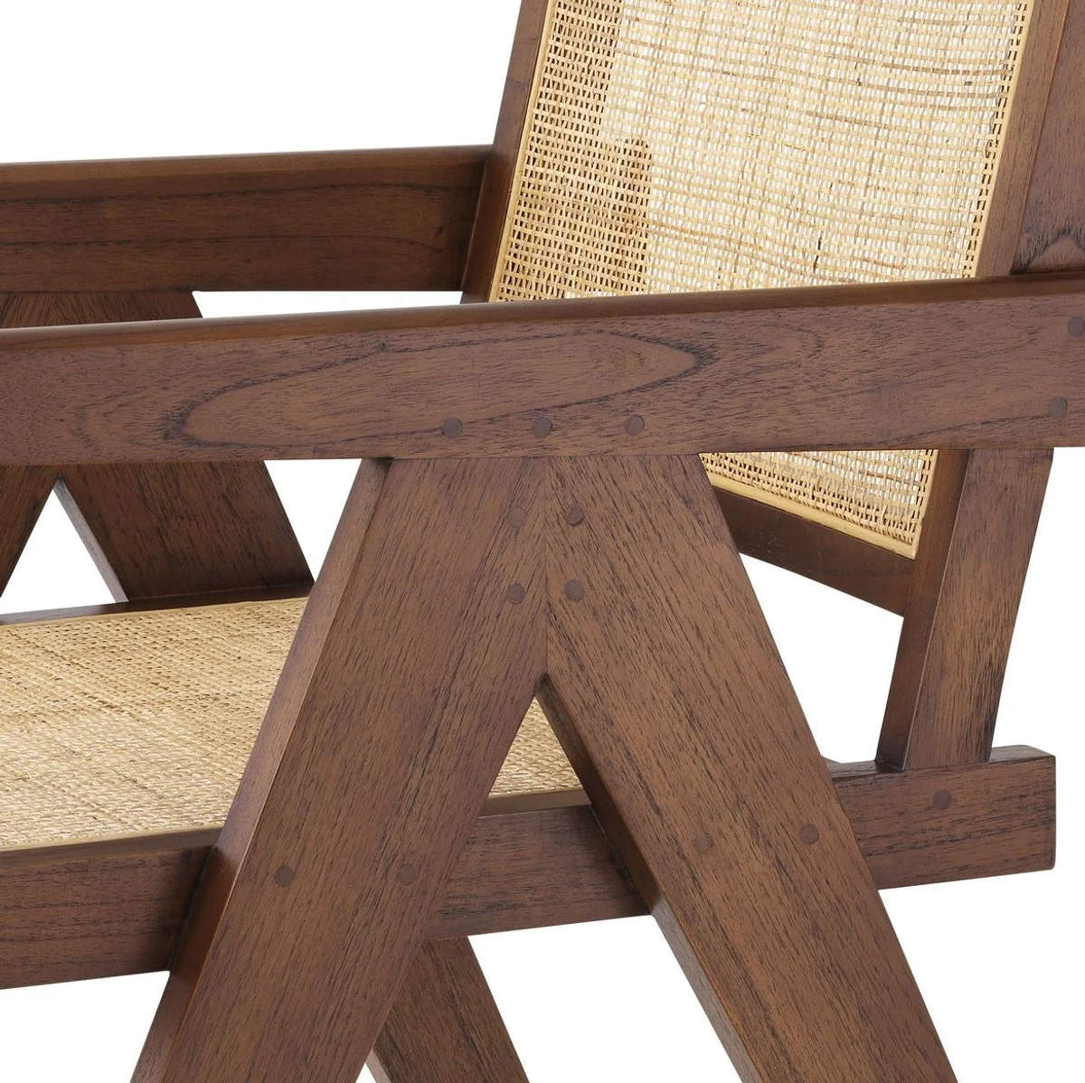 Casa Padrino silla de comedor de lujo marr¨®n / natural 57 x 65,5 x A. 90 cm - Silla de madera maciza con reposabrazos y rat¨¢n tejido a mano - Muebles de comedor de lujo