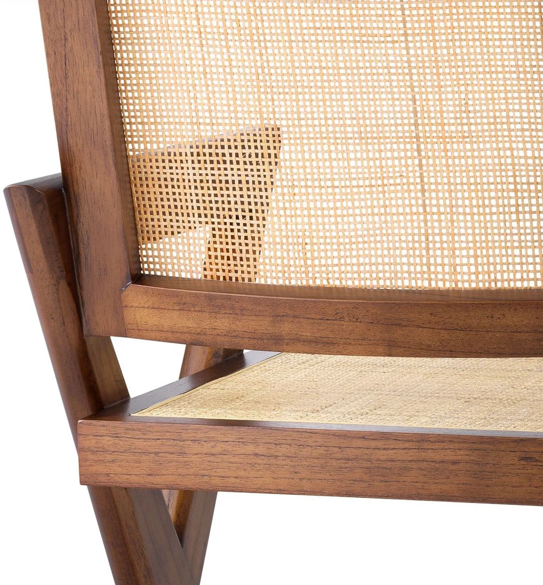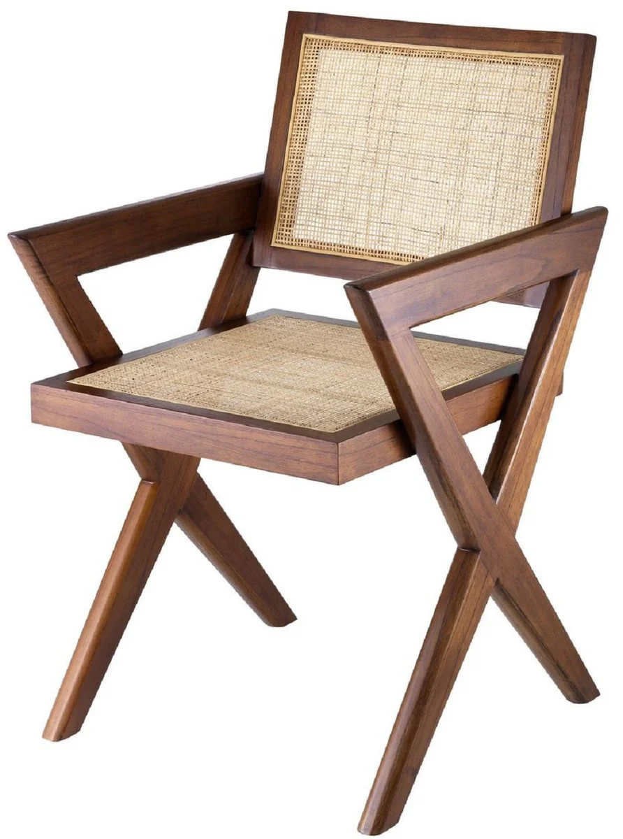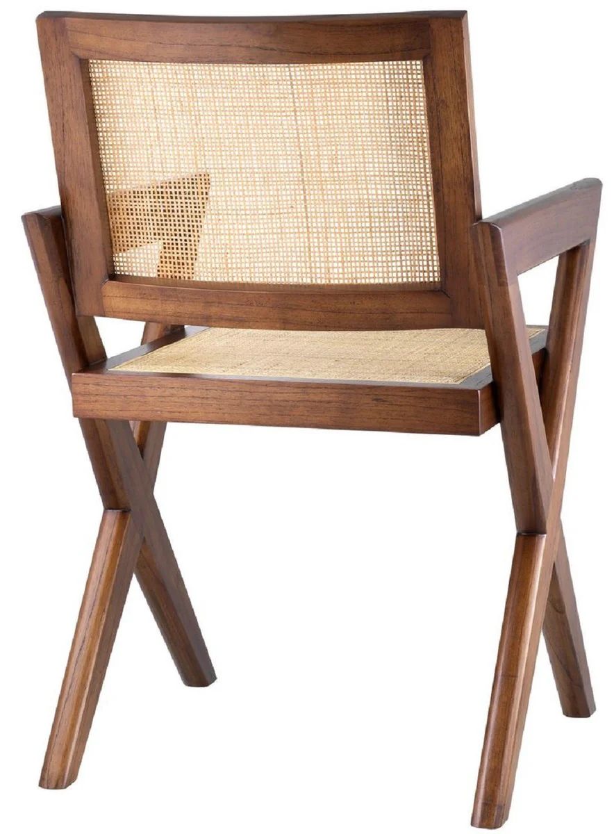 Casa Padrino silla de comedor de lujo marr¨®n / natural 53 x 57 x A. 84,5 cm - Silla de madera maciza con reposabrazos y rat¨¢n tejido a mano - Muebles de comedor de lujo