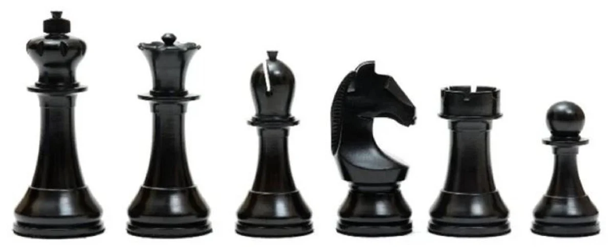 Casa Padrino conjunto de ajedrez de lujo negro / plata - Conjunto de ajedrez de madera - Tablero de ajedrez con piezas de ajedrez