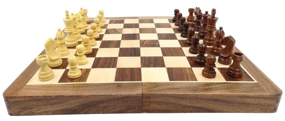 Casa Padrino conjunto de ajedrez de lujo marr¨®n / beige 30 x 30 cm - Ajedrez de madera plegable - Tablero de ajedrez de madera con piezas de ajedrez de madera - Accesorios de lujo