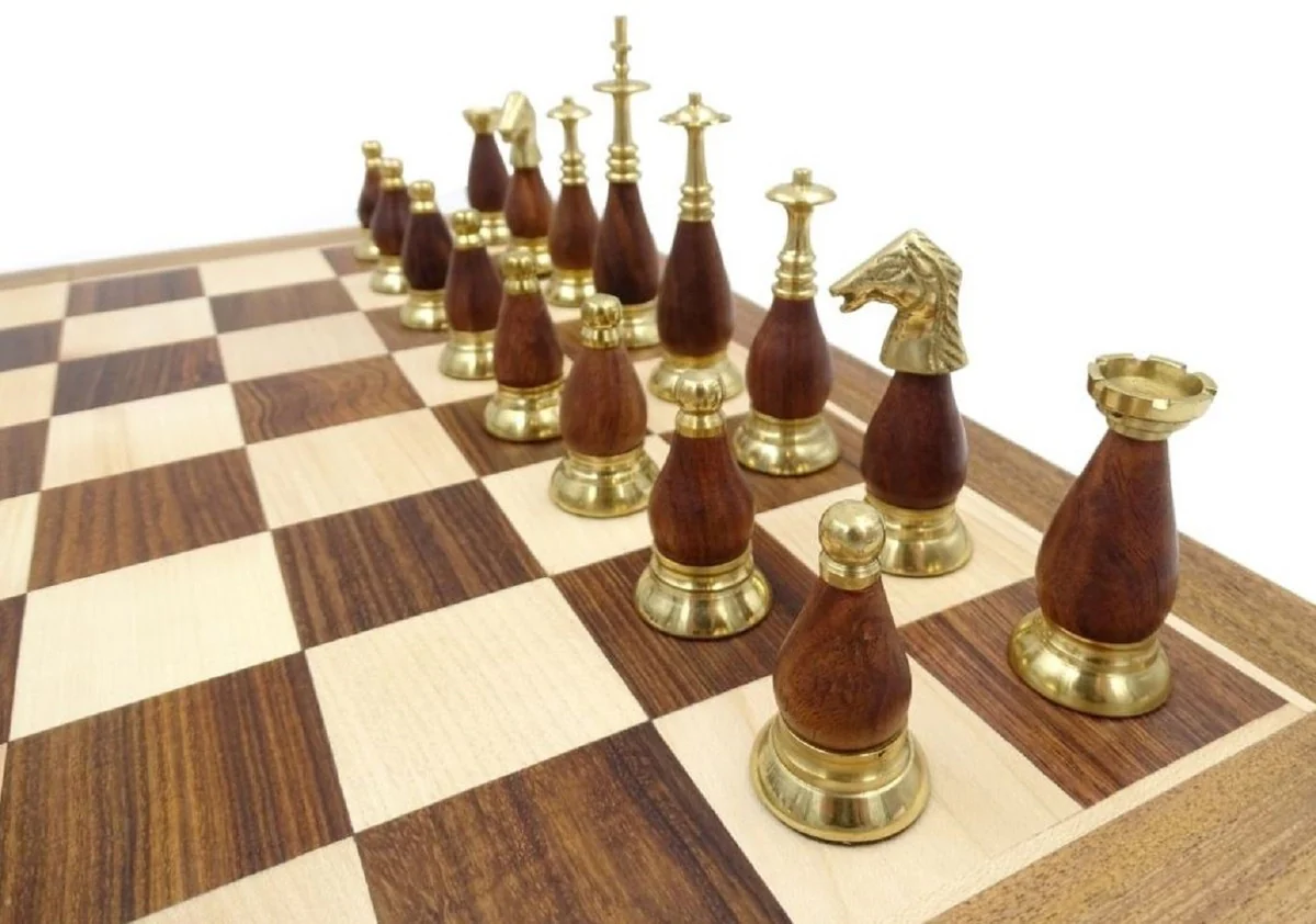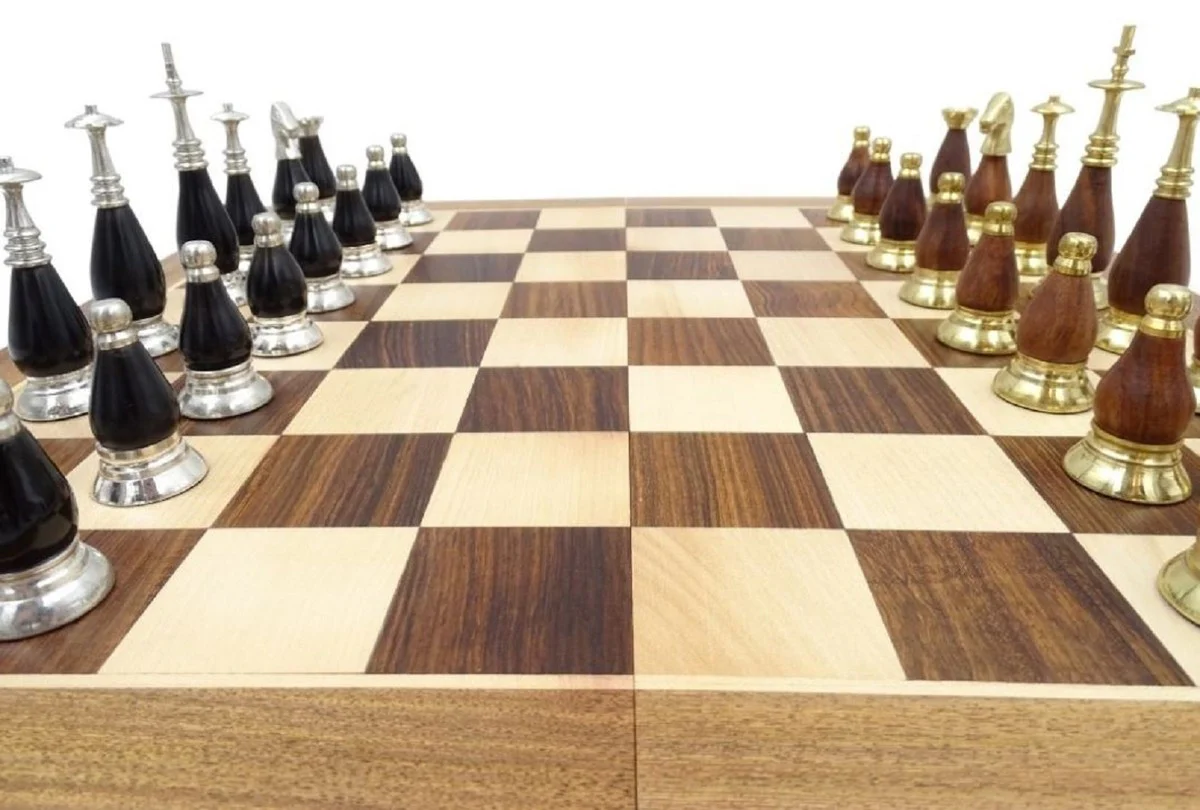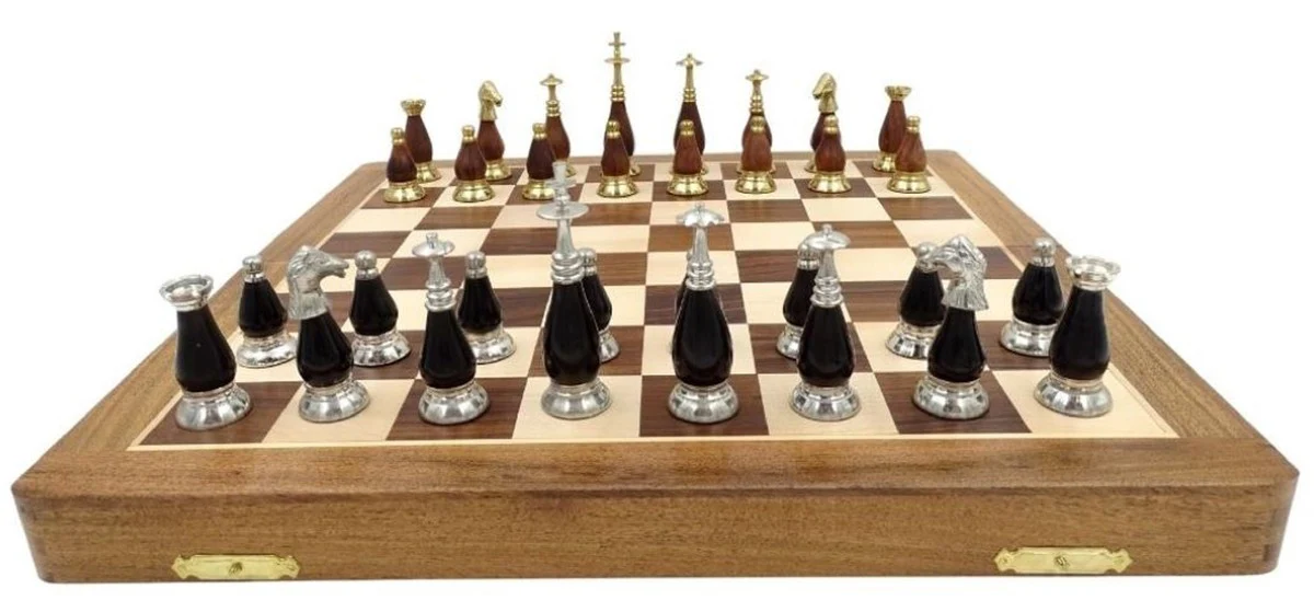 Casa Padrino conjunto de ajedrez de lujo marr¨®n / blanco / plata / oro 53 x 53 x A. 9,5 cm - Ajedrez de madera - Tablero de ajedrez de madera con piezas de metal hechas a mano