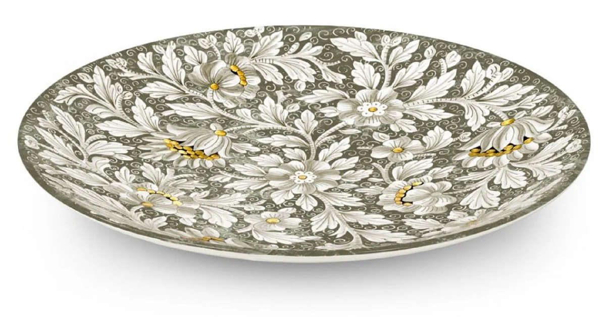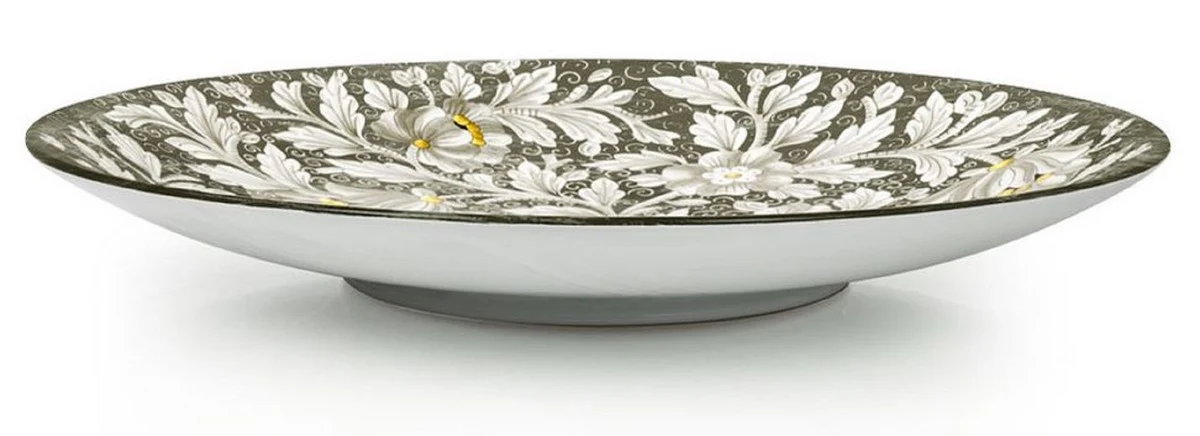 Casa Padrino conjunto de 6 platos de cer¨¢mica de lujo verde oliva / multicolor ? 40 cm - Platos llanos hechos y pintados a mano con dise?o floral - Accesorios hoteles y restaurantes - Hecho en Italia
