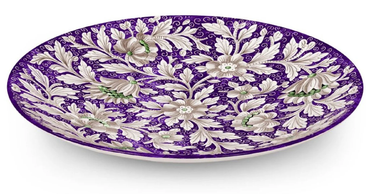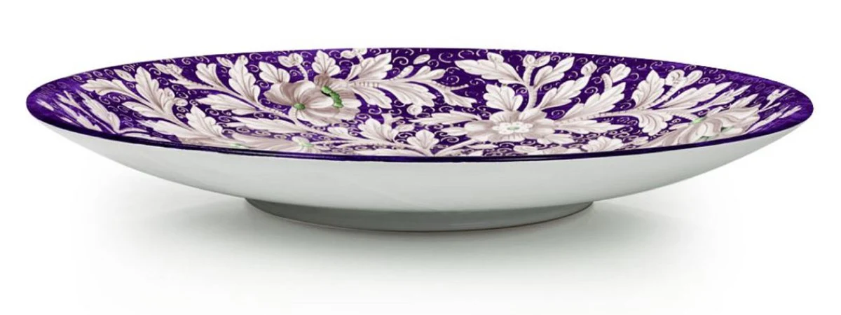 Casa Padrino conjunto de 6 platos de cer¨¢mica de lujo p¨²rpura / multicolor ? 40 cm - Platos llanos hechos y pintados a mano con dise?o floral - Accesorios hoteles y restaurantes - Hecho en Italia