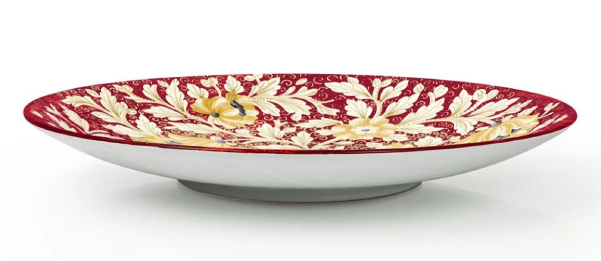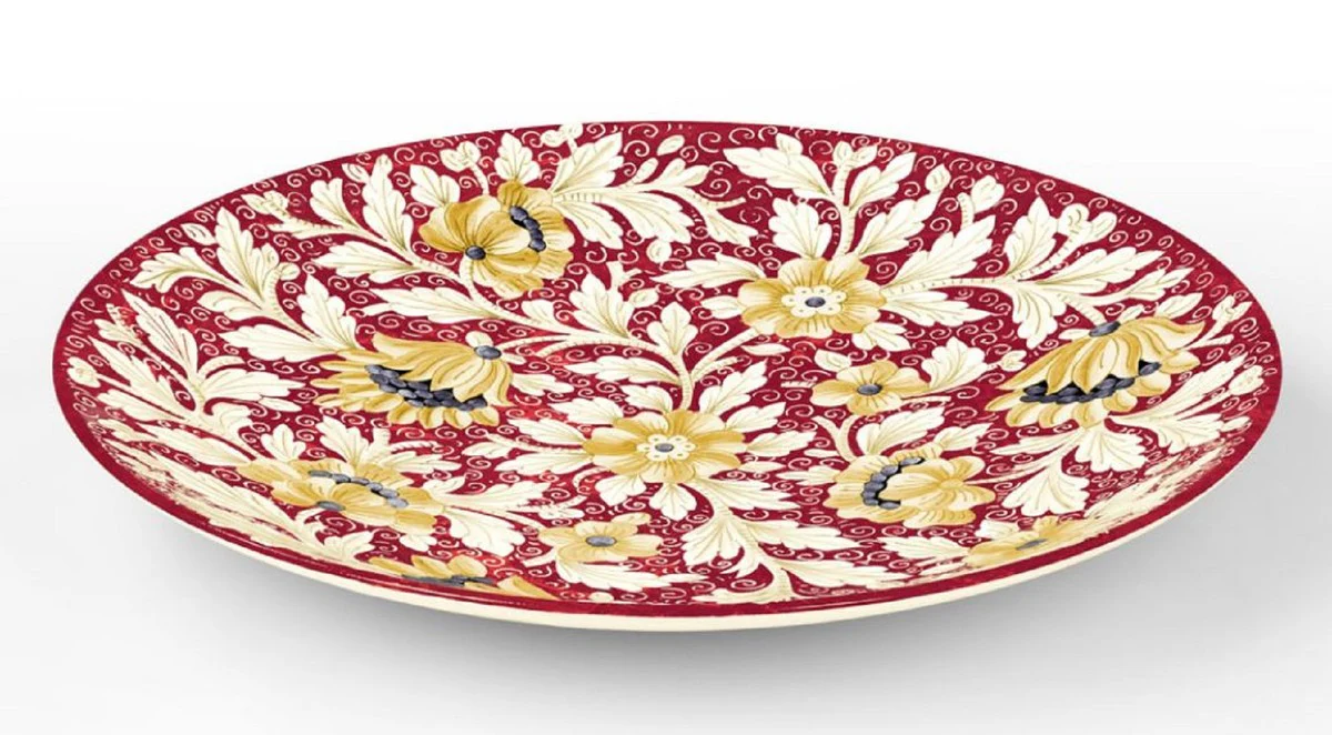 Casa Padrino conjunto de 6 platos de cer¨¢mica de lujo rojo / multicolor ? 40 cm - Platos llanos hechos y pintados a mano con dise?o floral - Accesorios hoteles y restaurantes - Hecho en Italia