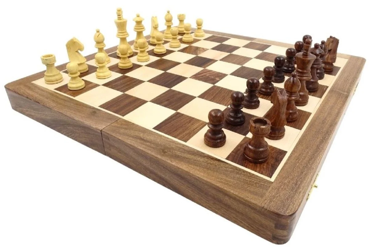 Casa Padrino conjunto de ajedrez de lujo marr¨®n / beige 40 x 40 cm - Ajedrez de madera plegable - Tablero de ajedrez de madera con piezas de ajedrez de madera - Accesorios de lujo