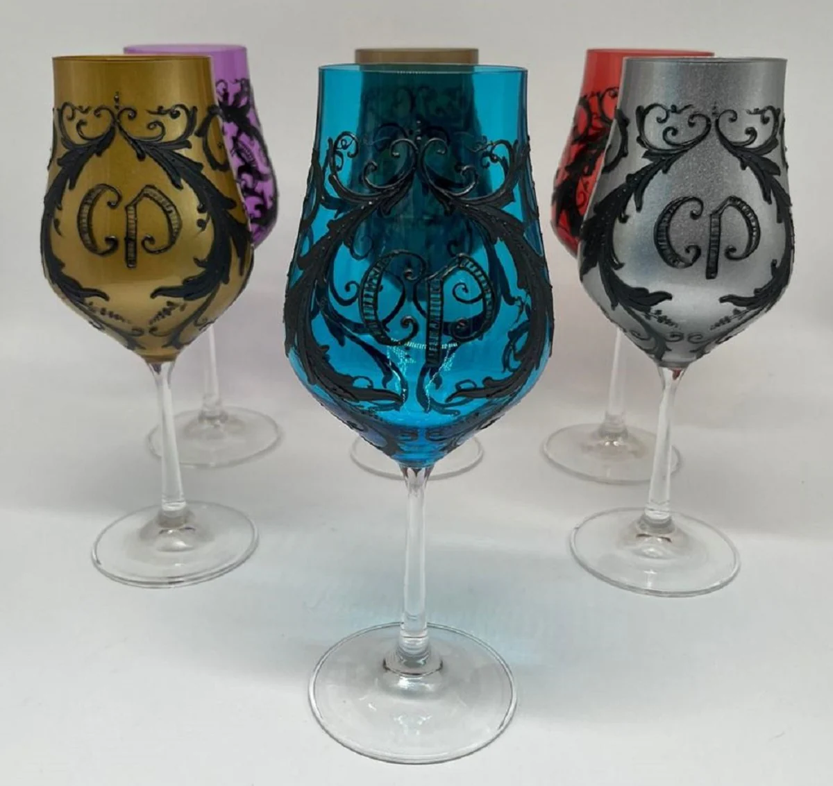 Casa Padrino conjunto de copas de vino barrocos de lujo colorido / negro - Copas de vino hechas a mano