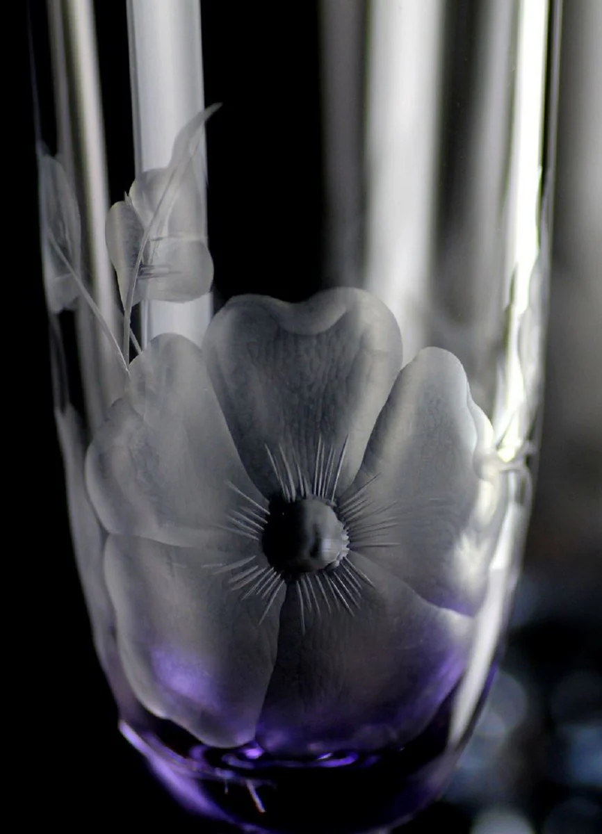 Casa Padrino conjunto de 6 copas de champ¨¢n barroco de lujo p¨²rpura ? 7 x A. 24,5 cm - Copas de champ¨¢n hechas a mano y grabadas a mano con dise?o de flores - Accesorios para Hoteles y Restaurantes