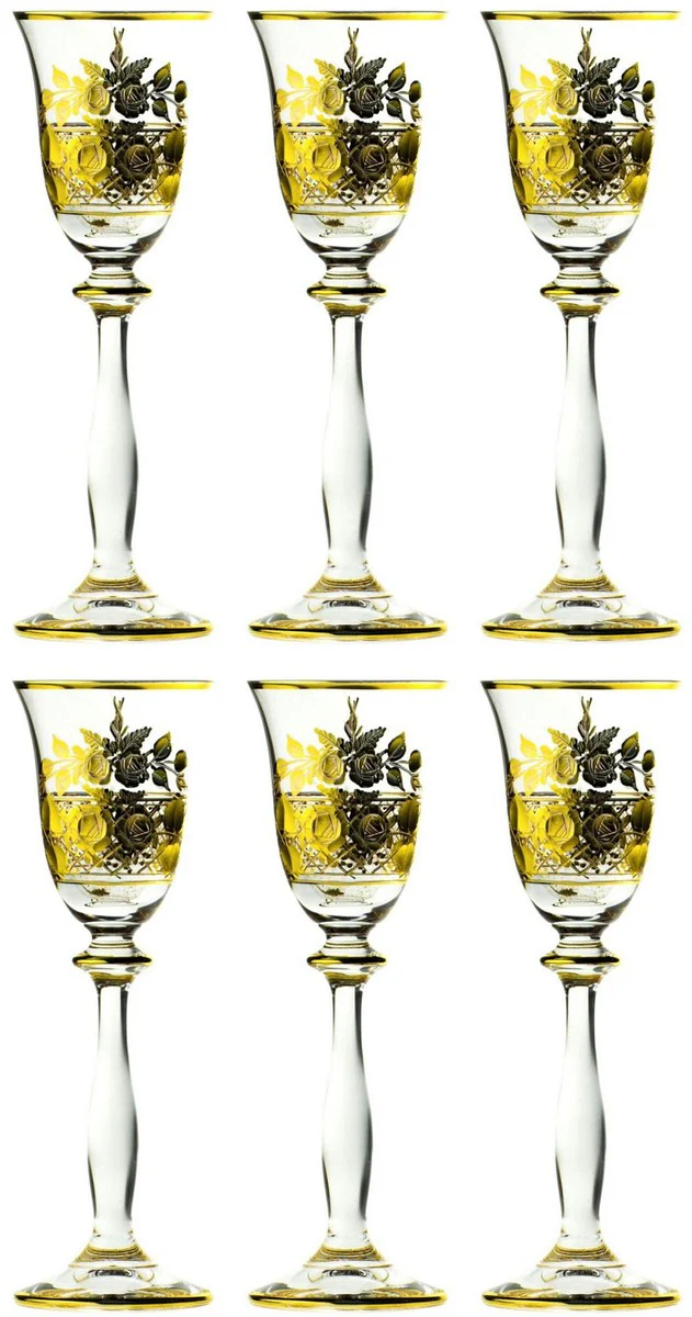 Casa Padrino conjunto de 6 vasos de licor barroco de lujo oro ? 5,5 x A. 17 cm - Vasos de licor hechos a mano y grabados a mano - Accesorios para Hoteles y Restaurantes - Calidad de Lujo